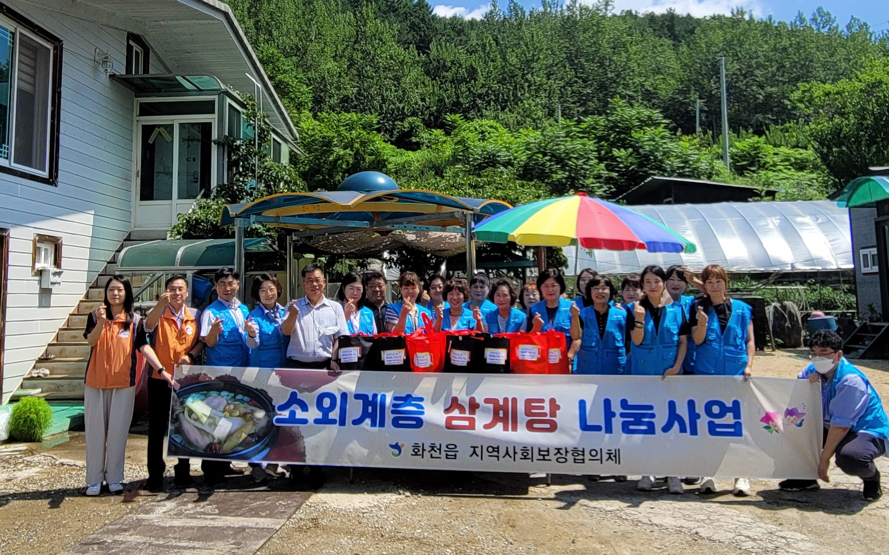 [강원사회복지신문 이정환 기자]=화천읍 희망이웃 지역사회보장협의체와 한국전력공사 화천지사는 지역 독거노인과 장애인 등 100가구를 위해 지난 7월 18일 여름철 보양식 삼계탕을 전달했다.