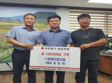 [강원사회복지신문 김종한 기자]=(주)영재산업건설(대표 김영국)에서 지난 7월 18일 평창읍 어려운 이웃을 위해 쌀 (2kg) 100포를 평창읍에 기탁하였다.
