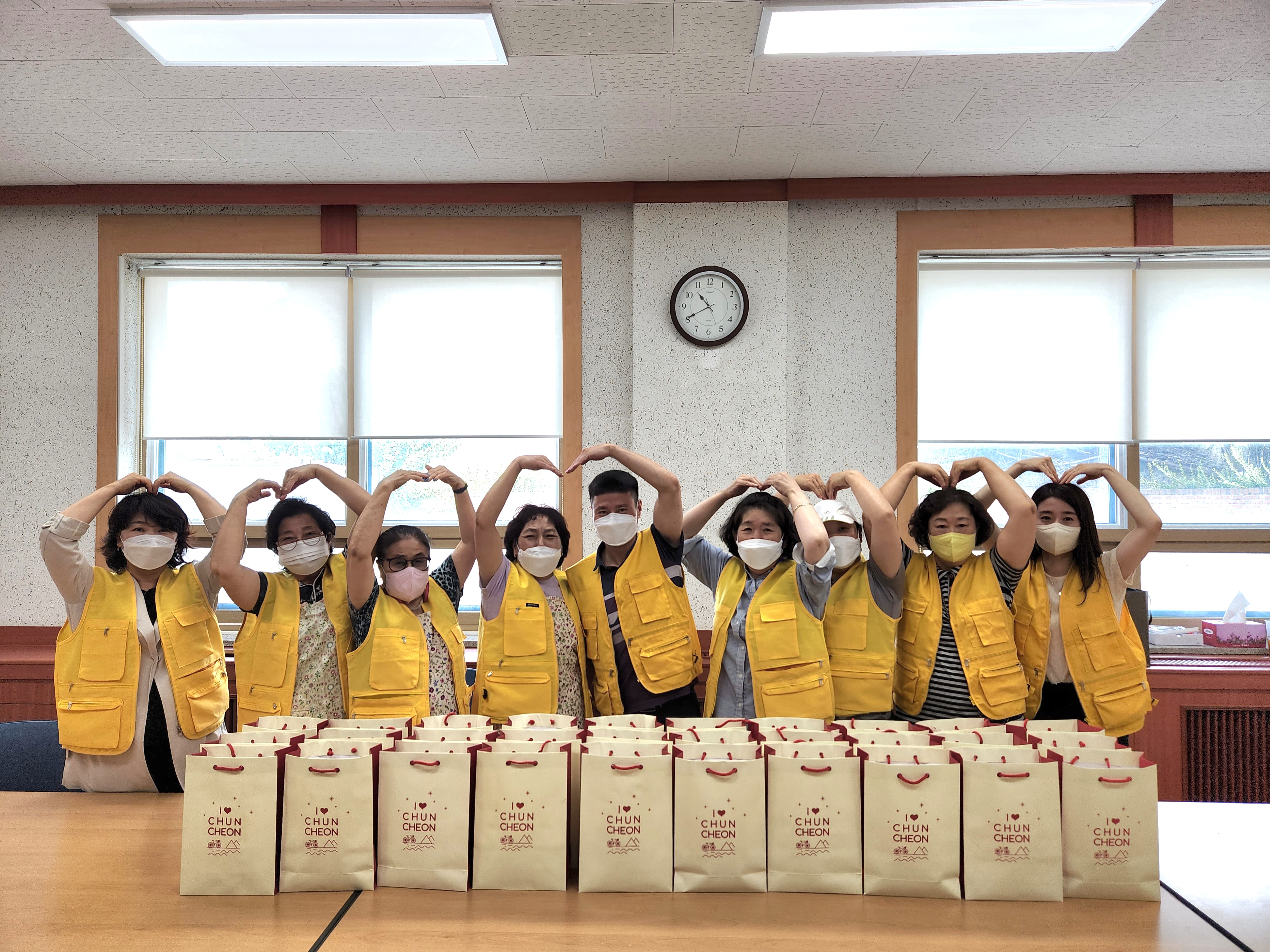 [강원사회복지신문 홍기한 기자]=춘천시 강남동 지역사회보장협의체(위원장:이옥희, 부위원장:최신철)는 지난 7월 12일 식사 준비에 어려움을 겪고 있는 관내 저소득 독거 어르신 및 중증장애인 등 33가구에 한국지적장애인발달협회(회장:이정식)이 후원한 삼계탕, 배추김치, 설기떡과 조미김을 전달했다.