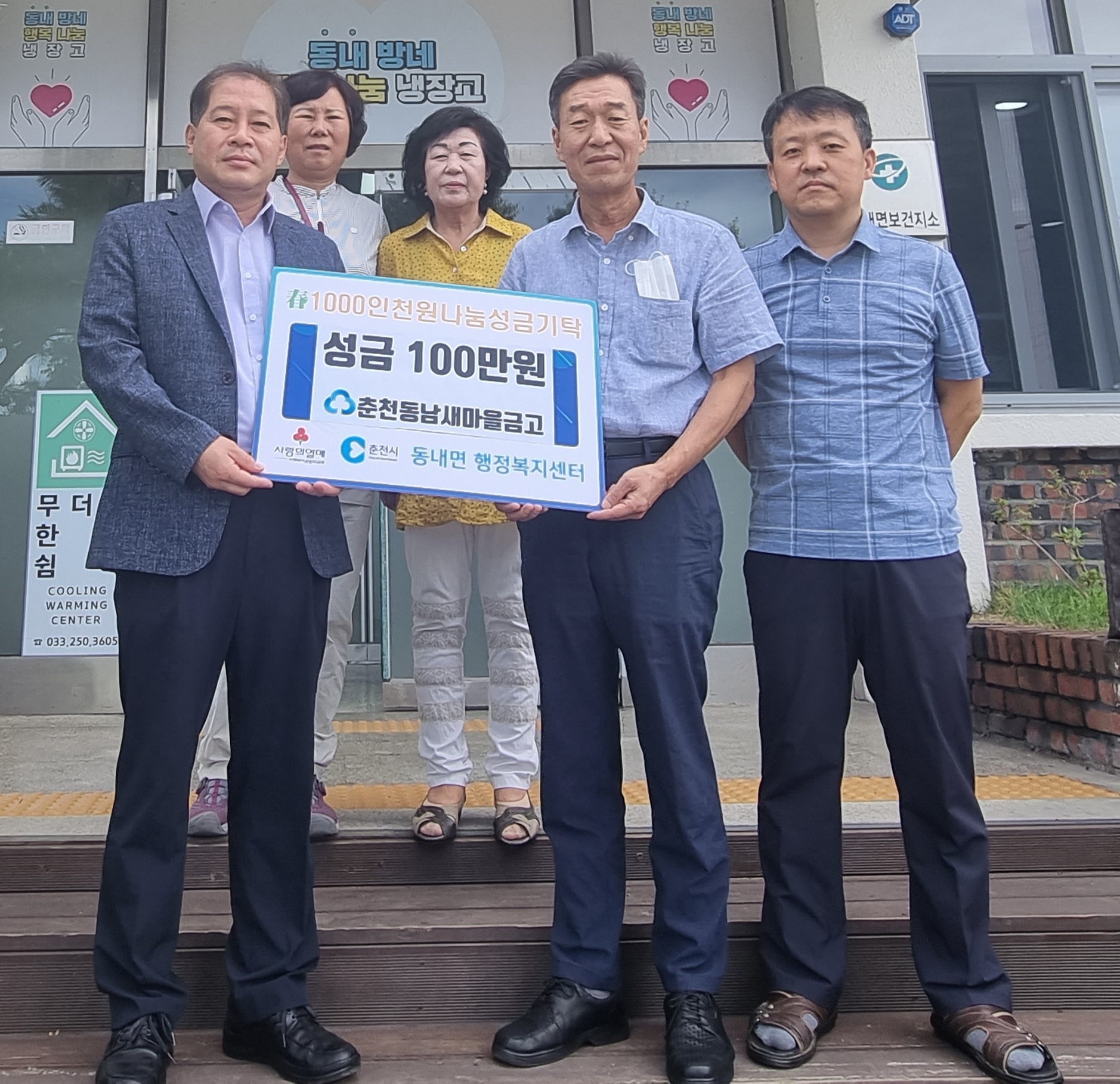 [강원사회복지신문 서은진 기자]=춘천동남새마을금고(이사장:곽진수)는 지난 7월 12일 춘천시 동내면 행정복지센터를 찾아 '동내방네, 행복나눔 냉장고' 사업을 위해 성금 100만원을 전달했다.