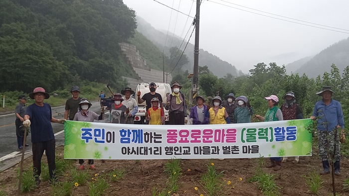 [강원사회복지신문 김종한 기자]=홍천군 화촌면 야시대1리(이장 한종희)는 지난 7월 11일과 12일 이틀에 걸쳐 자유수호 희생자 추모공원과 마을안길 도로변 화단에서 제초작업을 실시했다. 바쁜 농번기임에도 불구하고 주민 100여명이 참여, 장마철 큰 풀밭으로 변해버린 추모공원과 도로변 화단을 깔끔하게 가꾸었다. 야시대...