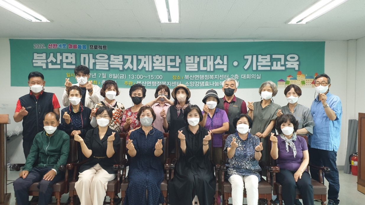 [강원사회복지신문 서은진 기자]=춘천시 북산면 마을복지계획단은 지난 7월 8일 북산면 행정복지센터에서 마을복지계획단원 17명이 참여한 가운데 발대식을 가졌다.