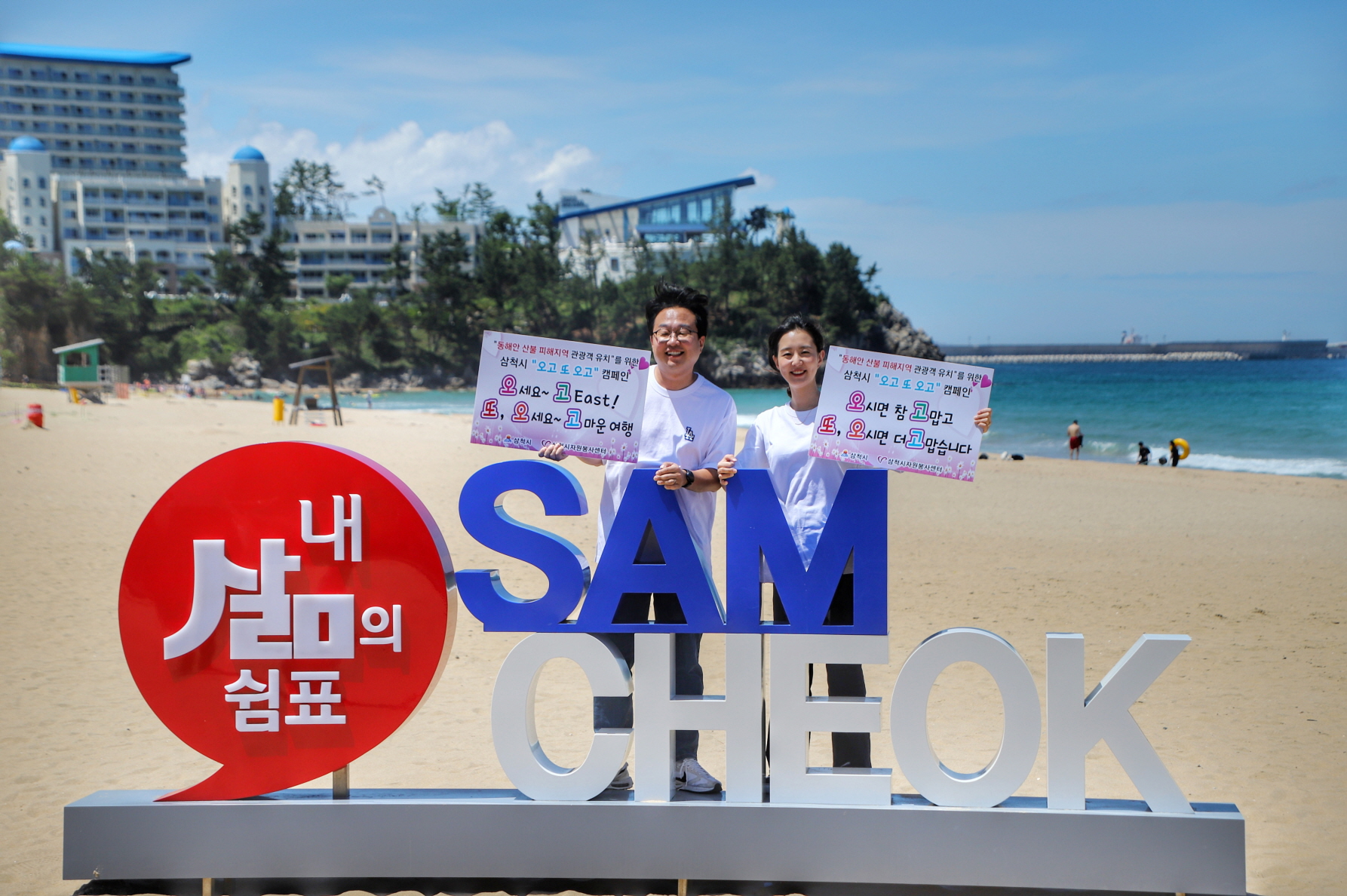 [강원사회복지신문 김종한 기자]=삼척시 홍보대사 박휘순♡천예지 부부는 지난 7월 1일 삼척해변 하트공원에서 '오고 또 오고' 기부 여행 독려캠페인과 '보고 또 보고' 교통안전 캠페인에 동참했다. 이 캠페인은 기부문화 확산을 통한 상생과 지역사회 교통안전 문제해결을 위해 동해안 산불 피해지역(경북 울진, 강원 삼척,...