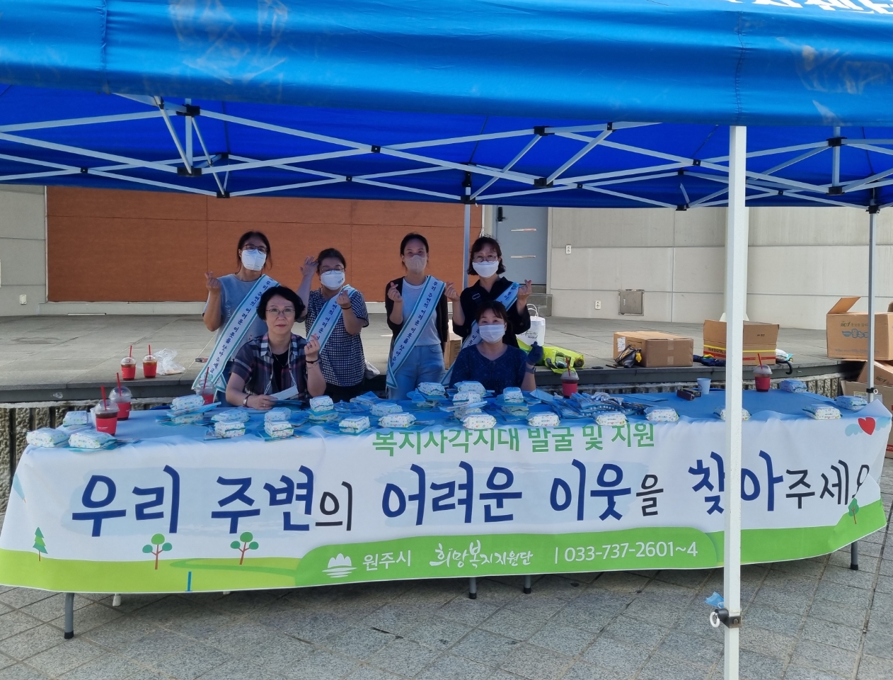 [강원사회복지신문 홍기한 기자]=중앙시장 상가와 문화의 거리에서 리플렛과 홍보물품 배부 원주시는 지난 6월 29일 희망복지지원단과 복지사각지대 발굴 및 지원을 위한 거리 캠페인을 진행했다. 이날 캠페인은 중앙시장 상가와 문화의 거리에서 리플렛과 홍보물품을 배부하며, 복지사각지대에 놓인 어려운 이웃에 대한 관심...