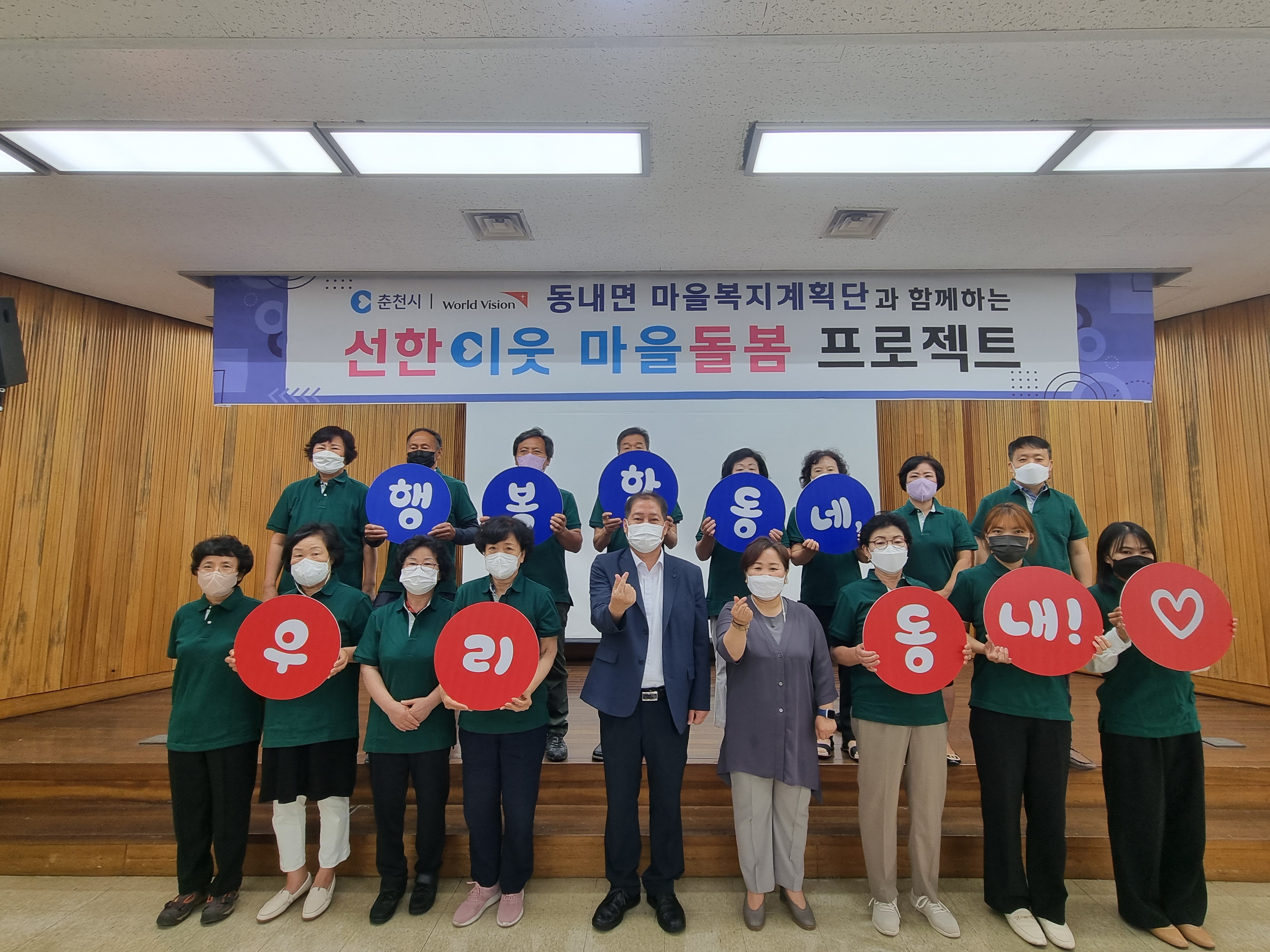 [강원사회복지신문 서은진 기자]=춘천시 동내면 마을복지계획단은 지난 6월 27일 월드비전 춘천종합사회복지관(관장:신희경)과 함께 '선한이웃 마을돌봄 프로젝트 사업'의 성공적인 수행을 위한 업무협약식과 발대식을 진행했다.
