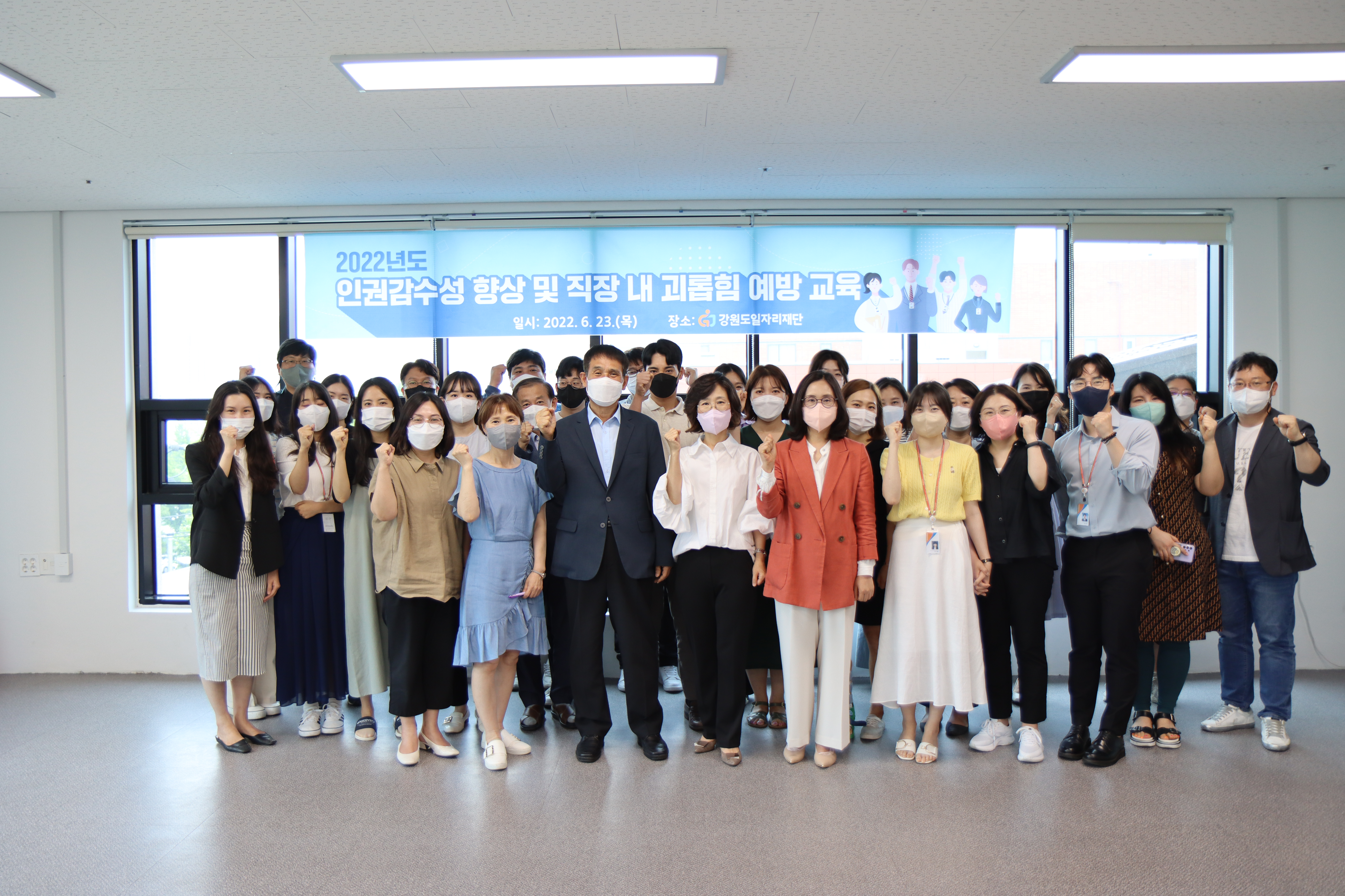 [강원사회복지신문 김종한 기자]=인권경영의 출발은 '서로가 다름을 인정'하는 것에서 시작 재단법인 강원도일자리재단(대표이사 박광용)은 지난 6월 23일, 재단 제2사무실(재단 인적자원개발부 사무실, 춘천시 중앙로 110 다나빌딩 4층) 회의실에서 '2022년도 재단 인권 및 직장내 괴롭힘 예방교육'를 실시하였다. 이번 교육...