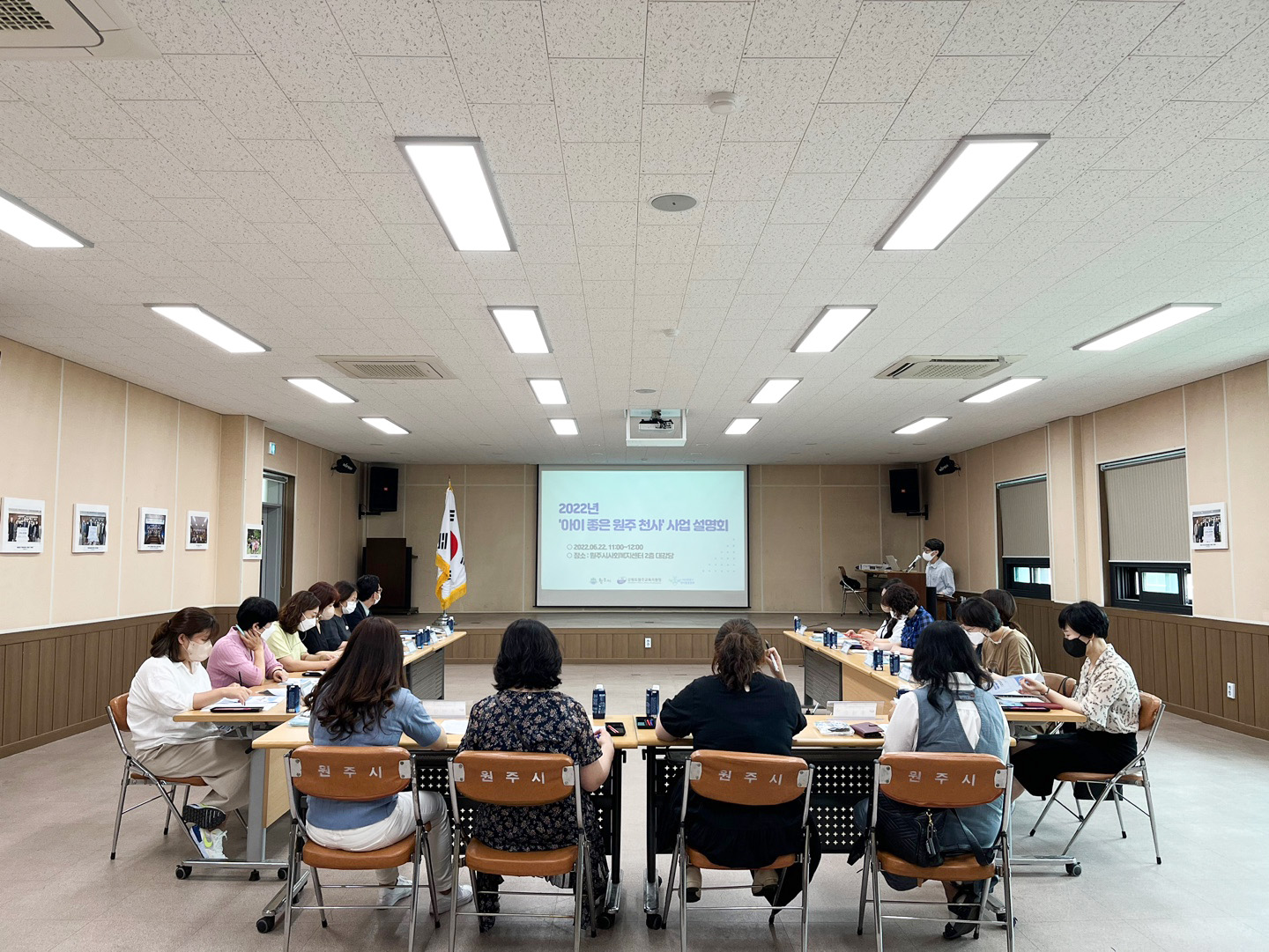 [강원사회복지신문 홍기한 기자]=원주시, 시민서로돕기 천사운동본부는 지난 6월 22일 원주사회복지센터 2층 대강당에서 강원도원주교육지원청, 관내 초·중·고등학교 학생지원 담당자 및 교육복지사 등 약 20여 명이 참석한 가운데 저소득, 위기가정 아동·청소년 건강·재능·희망 지원사업 '아이 좋은 원주천사' 사업설명...