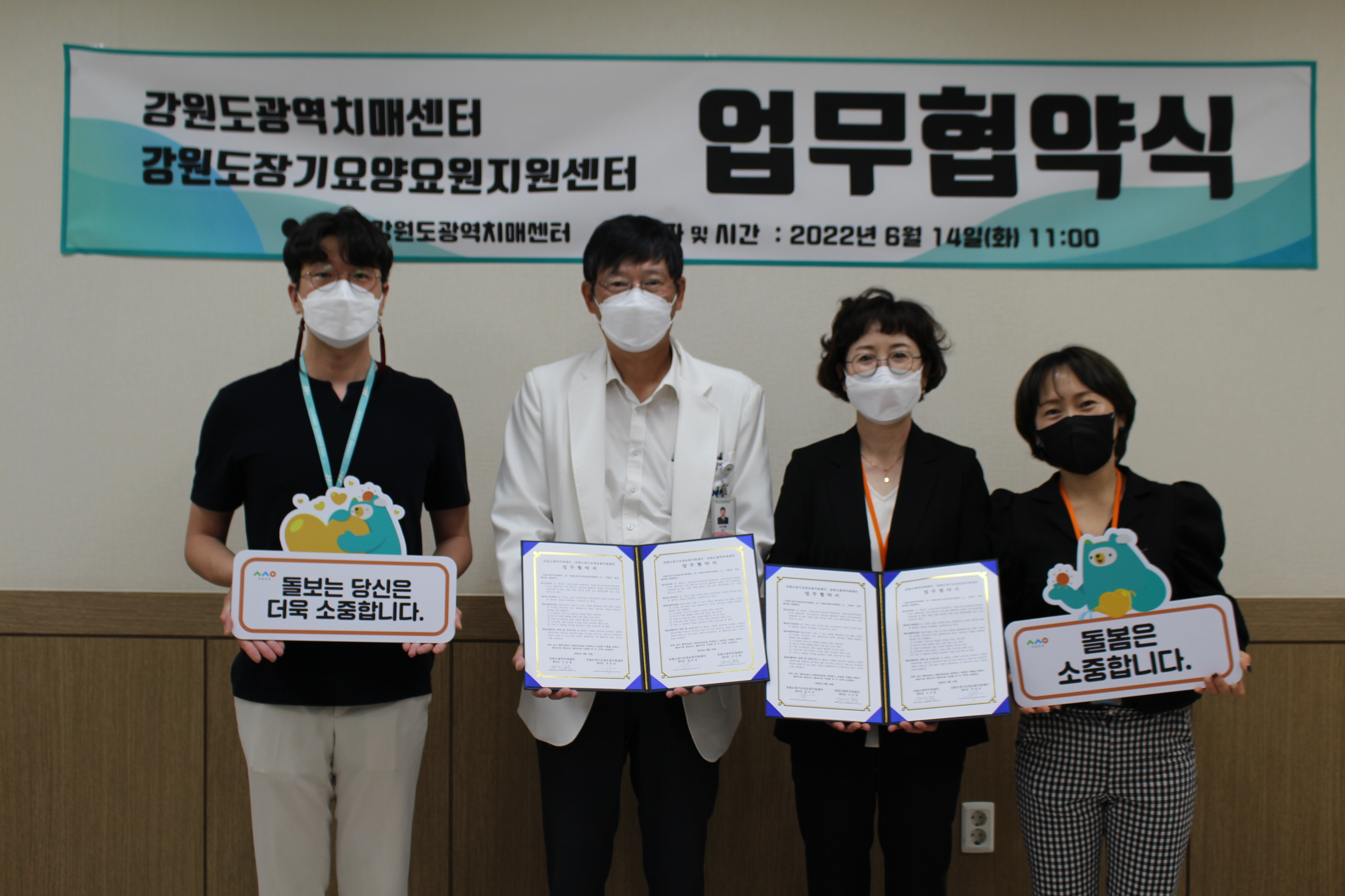 [강원사회복지신문 홍기한 기자]=강원도 장기요양요원지원센터는 지난 6월 14일(화) 강원도광역치매센터와 업무협약(MOU)를 체결하였다. 이번 협약은 강원도내 장기요양요원의 전문성 강화를 위한 치매교육 연계 추진과 좋은 돌봄 문화 확산을 위한 상호협력을 목적으로 추진되었다. 주요 협약 내용은 도내 장기요양요원을 대...