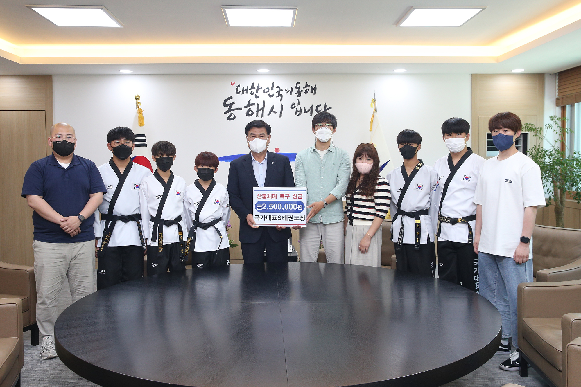 [강원사회복지신문 김종한 기자]=동해시 내 국가대표S태권도장에서 지난 6월 13일 동해시청을 방문해 원생들과 십시일반 힘을 모아 마련한 산불재해 복구 성금 250만원을 기탁했다.