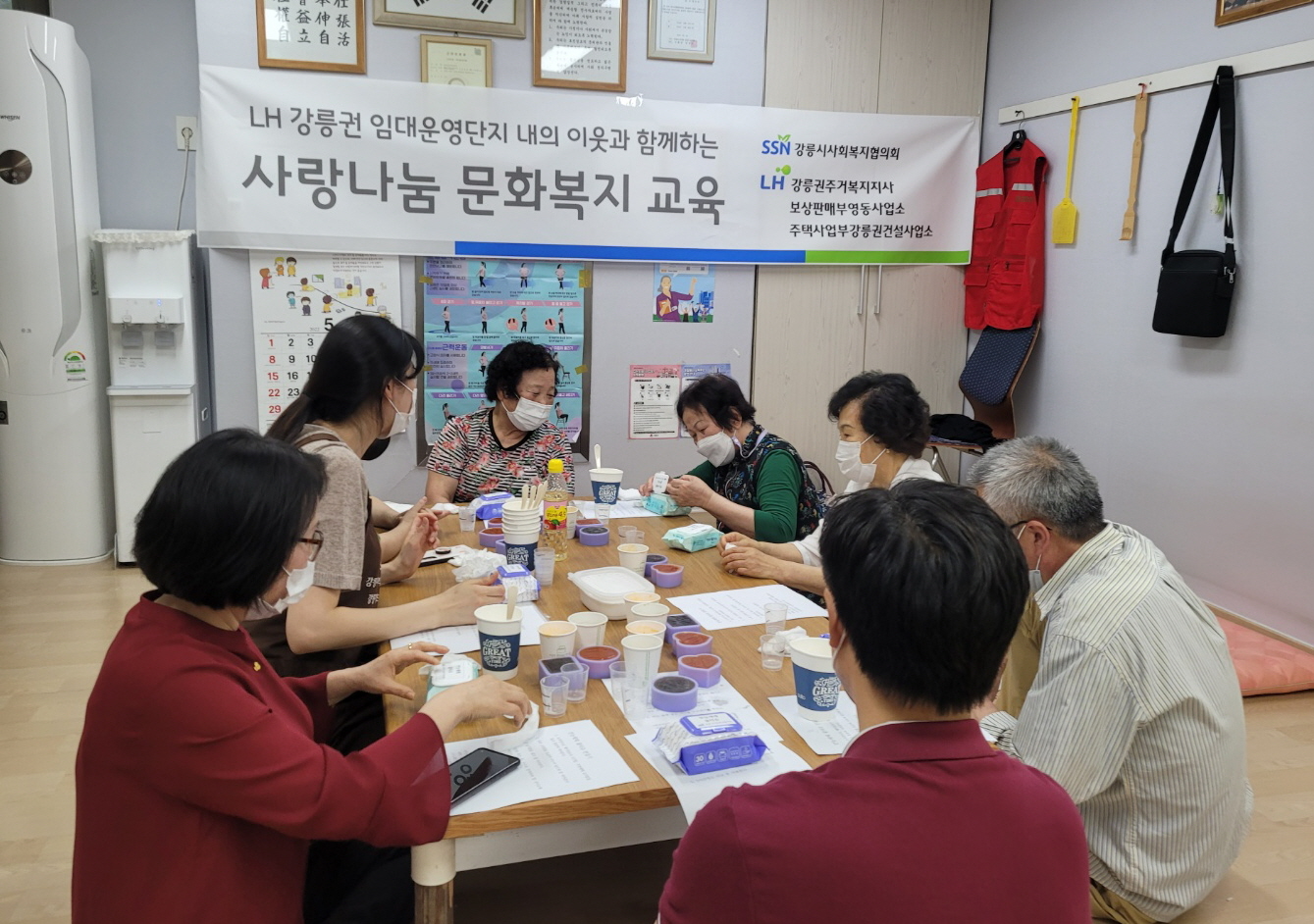 [강원사회복지신문 서은진 기자]=강릉시사회복지협의회(회장 이재석)와 LH 강원지역본부 강릉권주거복지지사는 매년 LH강릉권 임대 운영단지 내의 이웃과 함께하는 '사랑나눔 문화복지 교육'을 실시하고 있다. 이에 올해도 이웃 간 행복나누기 및 맞춤형 복지서비스를 실천하기 위해 비누만들기와 만능물티슈만들기 행사를 지...