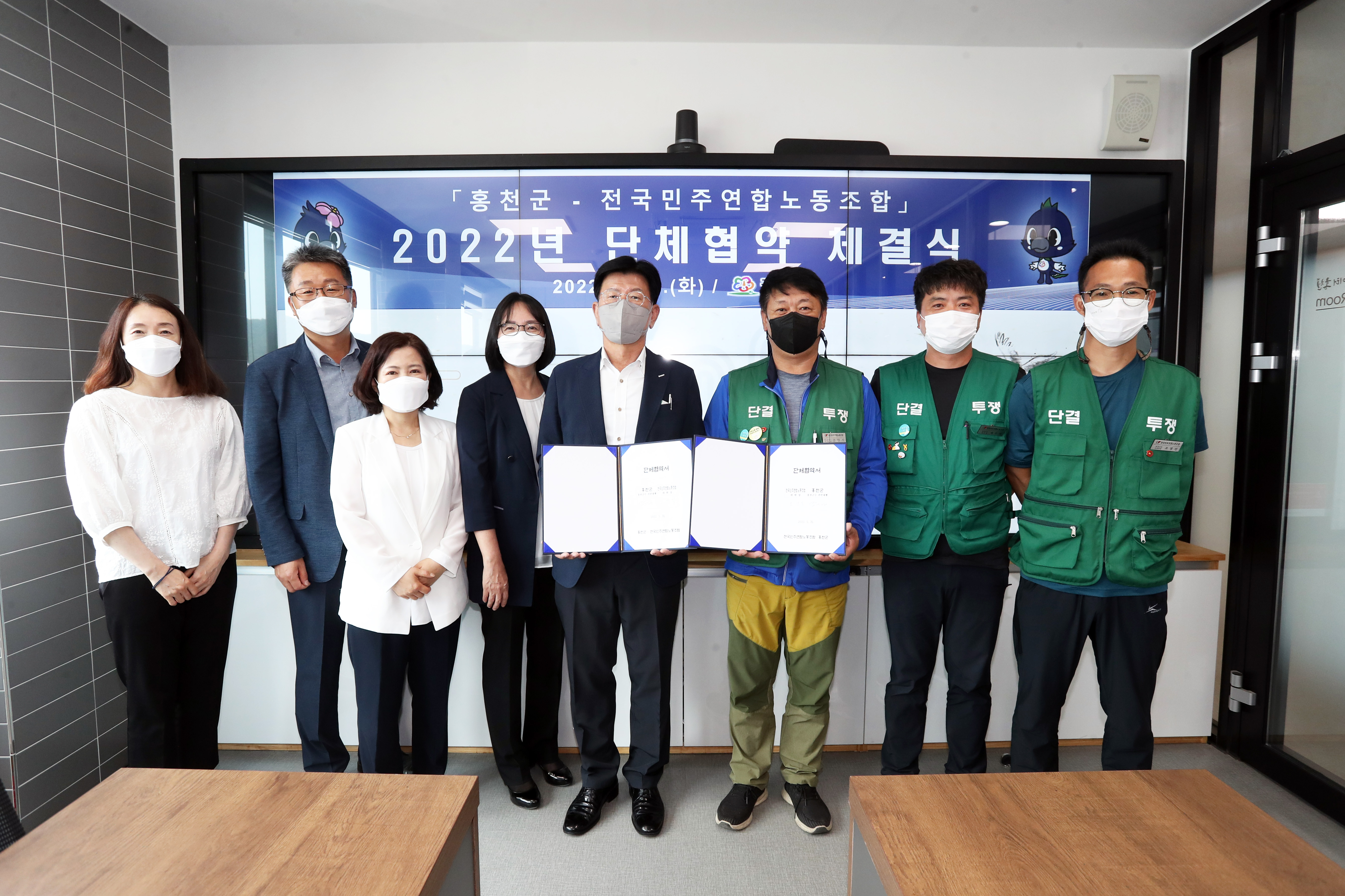 [강원사회복지신문 홍기한 기자]=박민영 홍천군수 권한대행은 지난 5월 31일 전국민주연합노동조합과 2022년 공무직 노조 단체협약을 체결했다. 협약식에는 노조 측 조만식 강원경북충북본부 조직2국장 등 노사 양측 교섭위원 10명이 참석했다.