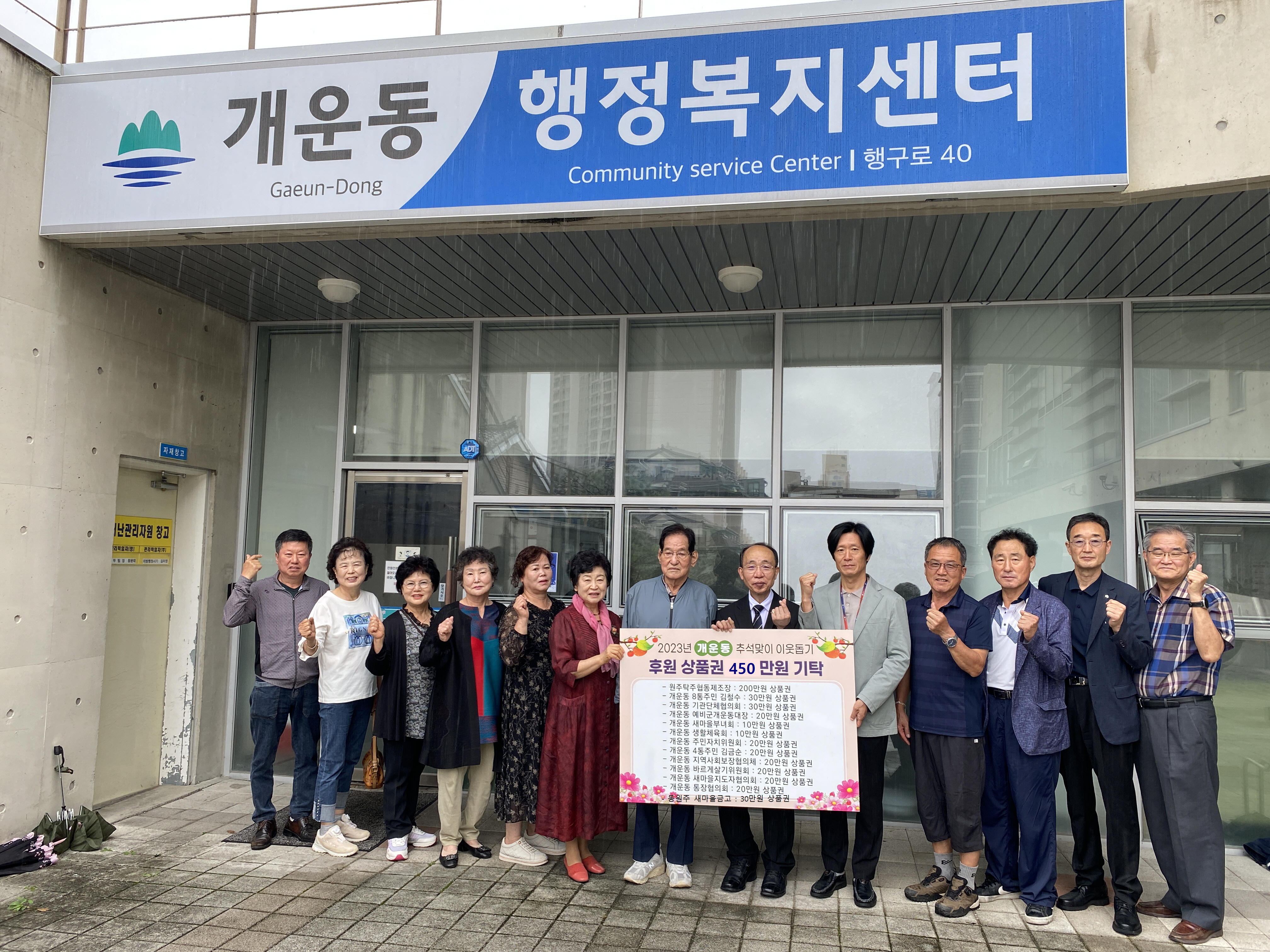 [강원사회복지신문 최재석 기자]=원주시 개운동에 소재한 원주탁주합동제조장(대표 이강부)을 비롯한 기관·단체는 지난 9월 26일 개운동행정복지센터를 방문하여 민족 고유의 명절인 추석을 앞두고 저소득 이웃돕기 후원 상품권 450만원을 기탁하였다.