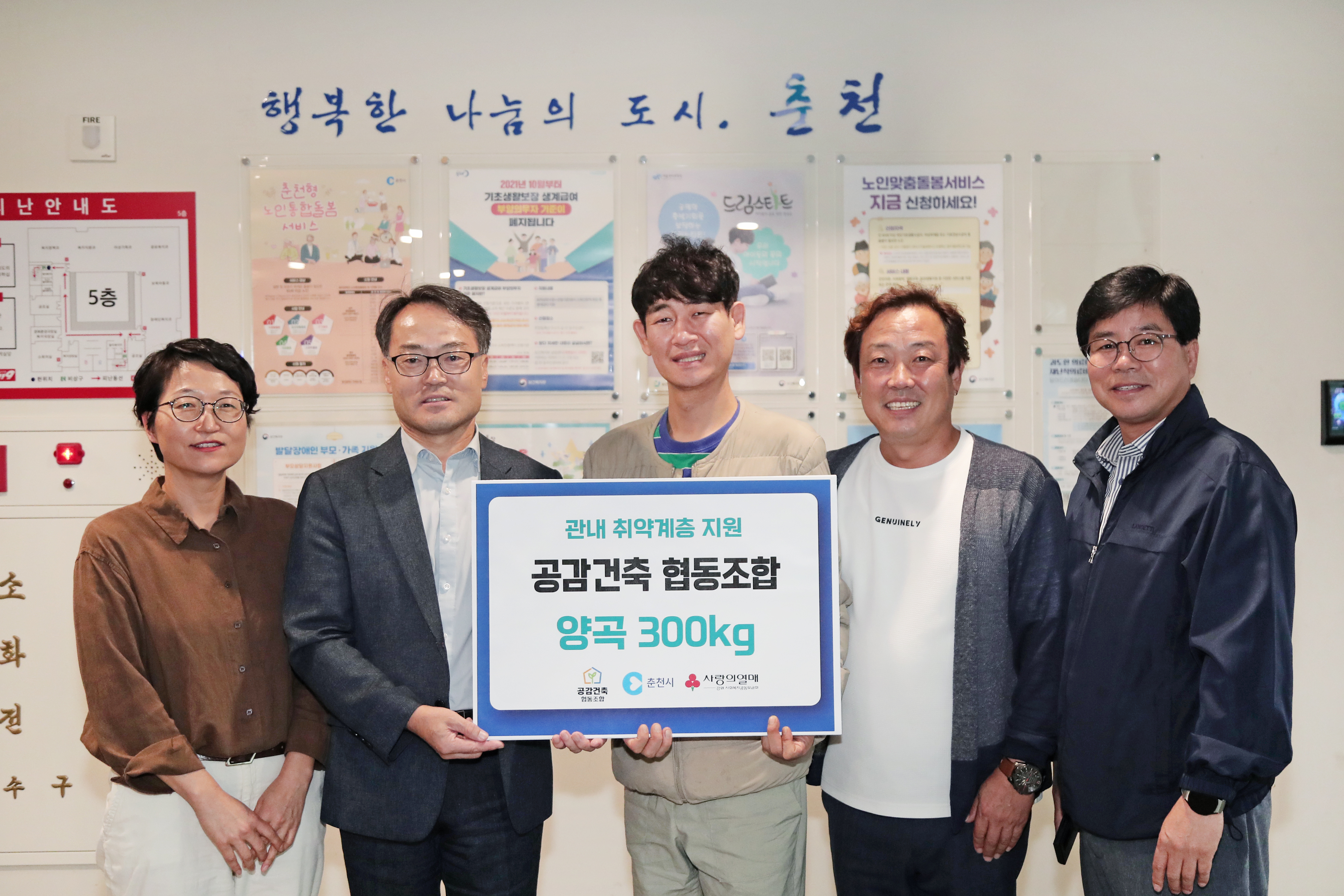 [강원사회복지신문 김도연 기자]=공감건축 협동조합(대표 윤건웅)은 지난 9월 26일 춘천시청을 찾아 양곡 300㎏를 기부했다.