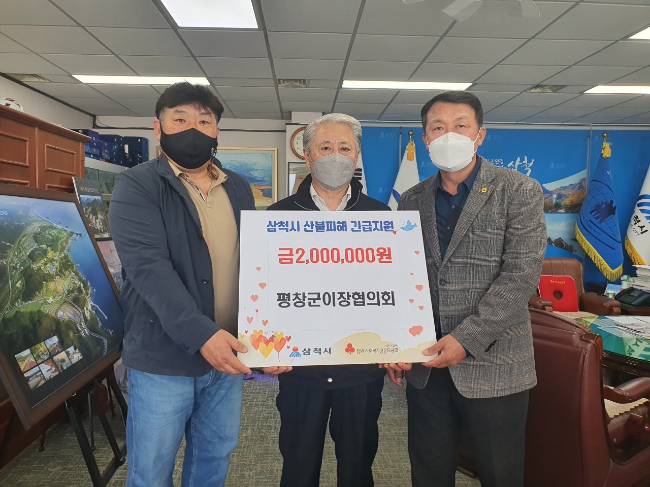 [강원사회복지신문 이정환 기자]=강원도 이·통장 연합회 평창군지회(회장 변인호)에서는 지난 4월 8일 대형 산불로 큰 피해를 입은 삼척시의 산불 피해 복구와 이재민들을 위해 성금 200만을 기탁하였다. 변인호 평창군지회장은 "최근 일어난 산불로 큰 피해를 입은 주민들에게 조금이나마 위로가 되었으면 좋겠다."며, "다...
