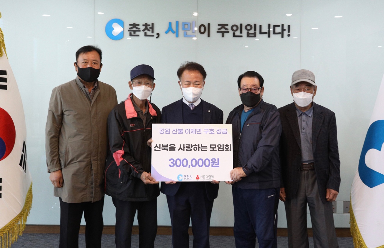[강원사회복지신문 홍기한 기자]='신북을 사랑하는 모임회(회장:이상수)'는 지난 4월 7일 춘천시청 접견실에서 강원도 산불 이재민 구호 성금 30만원을 춘천시정부에 전달했다.