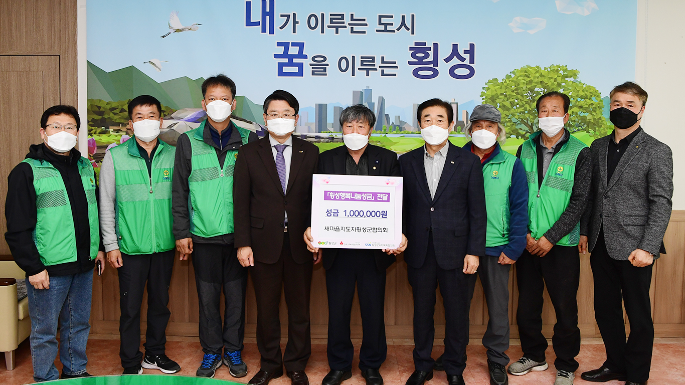 [강원사회복지신문 홍기한 기자]=새마을지도자 횡성군협의회(군협의회장 이완성)는 지난 4월 6일 오후 3시, 군수집무실을 방문하여 '횡성행복나눔성금'에 성금 100만원을 기탁하였다. 이날 전달식에는 군협의회장 및 읍면협의회장 9명이 참석하였으며, 기탁된 성금은 횡성군 관내 저소득층 및 복지사각지대에 있는 어려운 이...