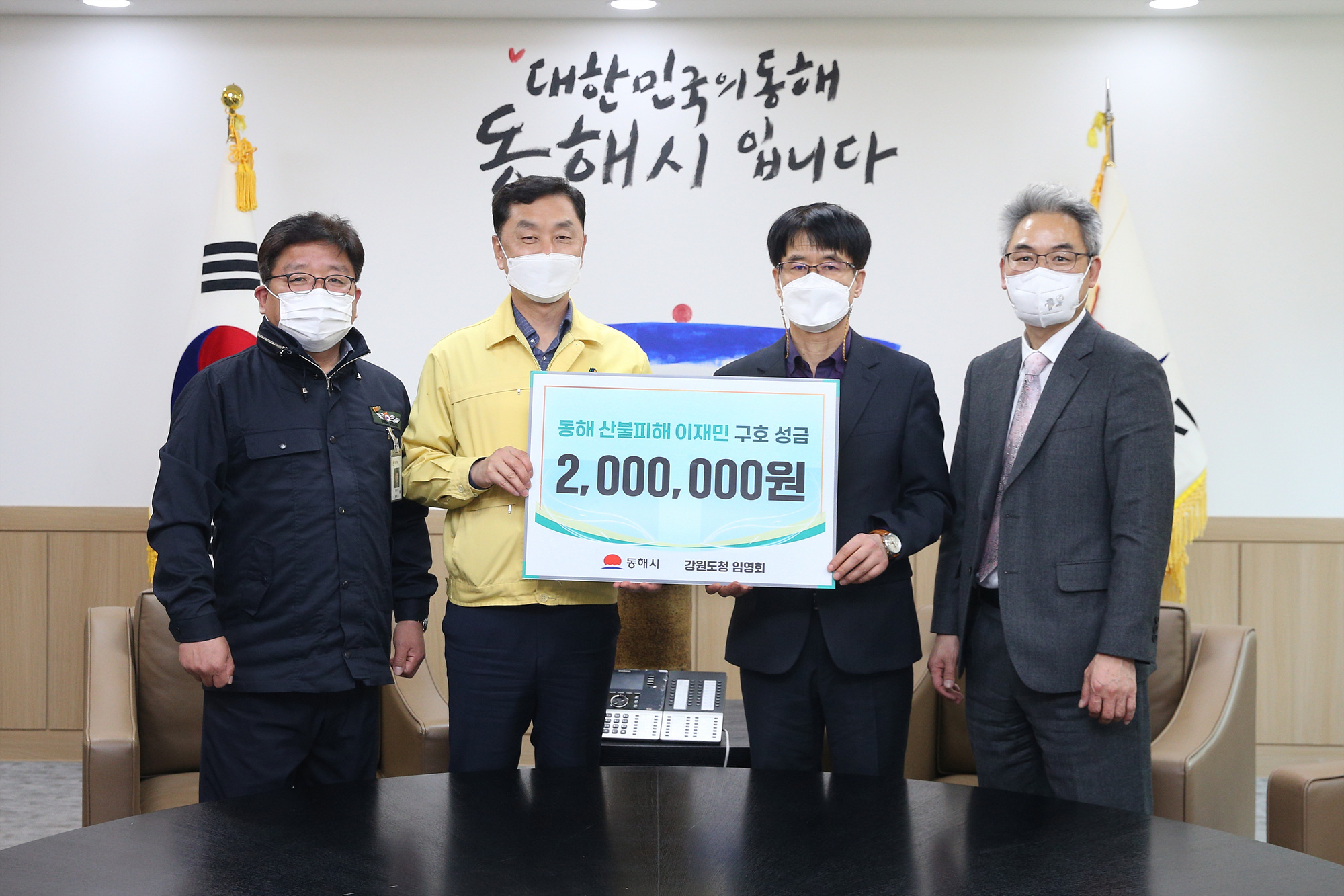 [강원사회복지신문 서은진 기자]=강원도청 임영회에서 지난 4월 5일 동해시청을 방문해 200만원의 산불피해성금을 기탁했다.