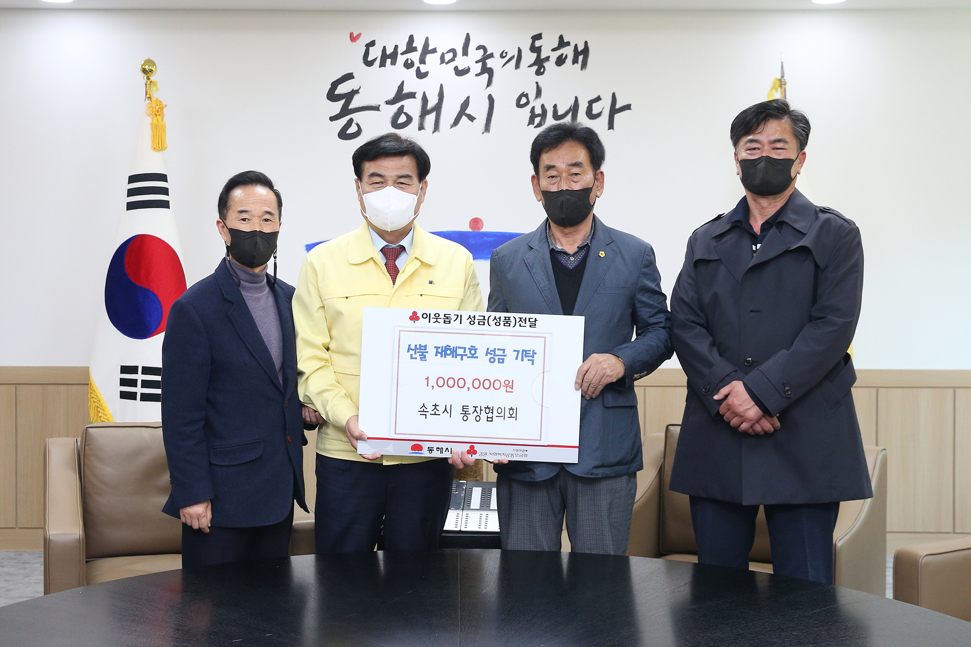 [강원사회복지신문 서은진 기자]=동해시는 지난 4월 5일 속초시 통장협의회로부터 산불피해성금 100만원을 전달받았다.