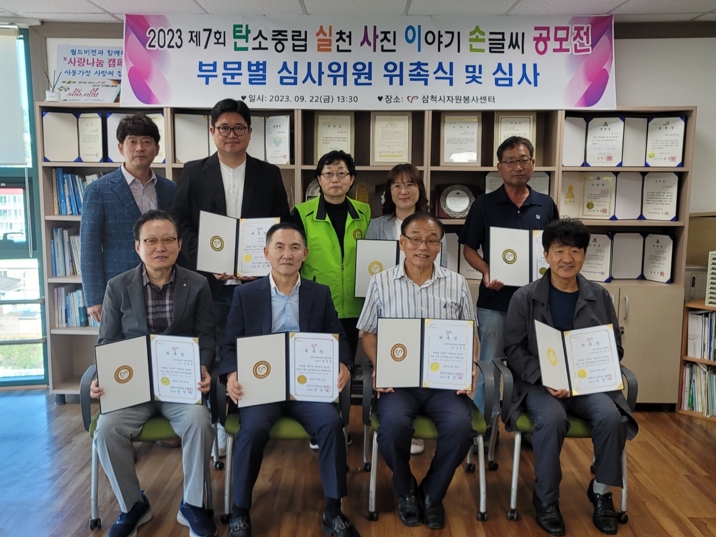 [강원사회복지신문 홍기한 기자]=삼척시자원봉사센터(센터장 정영옥)는 지난 9월 22일(금) 제7회 탄소중립 실천 자원봉사 공모전 심사위원 7명을 위촉하고 부문별 심사에 들어갔다. 이번 공모전은 '탄소중립 실천으로 만들어가는 행복한 환경·나눔 특별시 삼척'이라는 주제로 총 104점의 응모작이 접수되었으며 작품성, 독창...