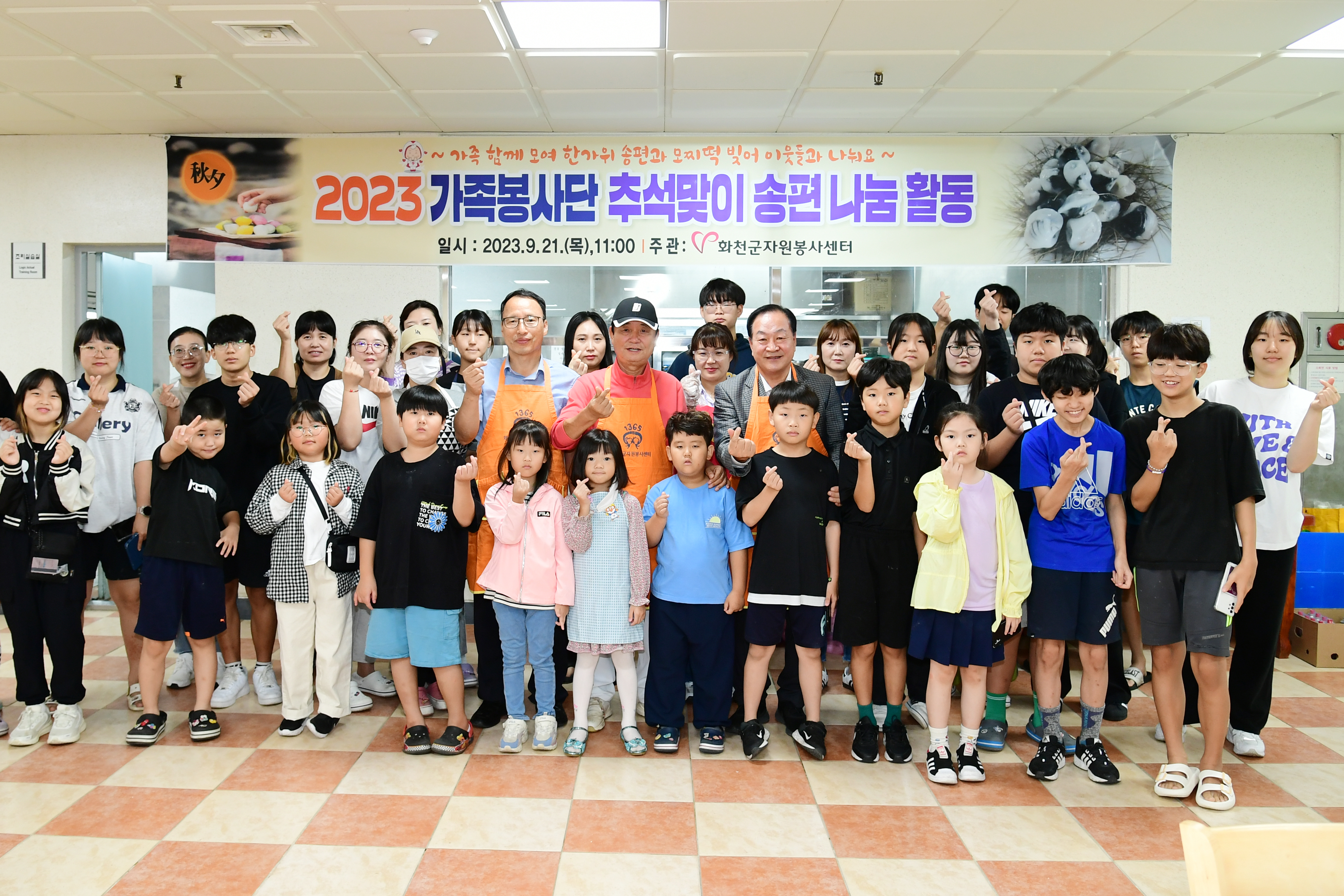[강원사회복지신문 이정환 기자]=화천군자원봉사센터(센터장 최희석)는 지난 9월 23일 화천군여성회관 지하식당에서 최문순 화천군수, 한기호 국회의원이 참석한 가운데 가족봉사단, 부뚜막봉사단 70여명과 함께 추석맞이 어르신을 위한 송편을 만들어 사회복지시설과 홀로 사는 어르신께 전달했다.