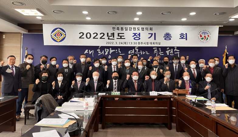 [강원사회복지신문 홍기한 기자]=2022 민족통일강원도협의회 정기총회가 지난 3월 24일 박정균 민족통일원주시협의회장과 김문기 민족통일강원도협의회장, 조종용 원주시장 권한대행 등 시 관계자 등 50여 명이 참석한 가운데 원주시청에서 개최됐다. 이날 총회에서는 새로 취임한 민족통일강원도협의회 부회장을 비롯해 임원...