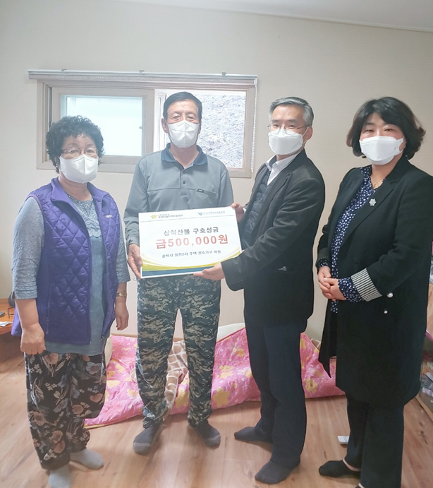 [강원사회복지신문 김종한 기자]=삼척지역자활센터(센터장 오강석)와 포항나눔지역자활센터(센터장 송애경)는 삼척 산불화재로 주택 전체가 전소된 원덕읍 월천2리 주민의 임시 거주지를 방문하여 성금 50만 원을 전달했다. 이번 성금은 산불피해로 어려움을 겪는 이재민을 위해 조금이나마 도움이 되고자 포항나눔지역자활센...