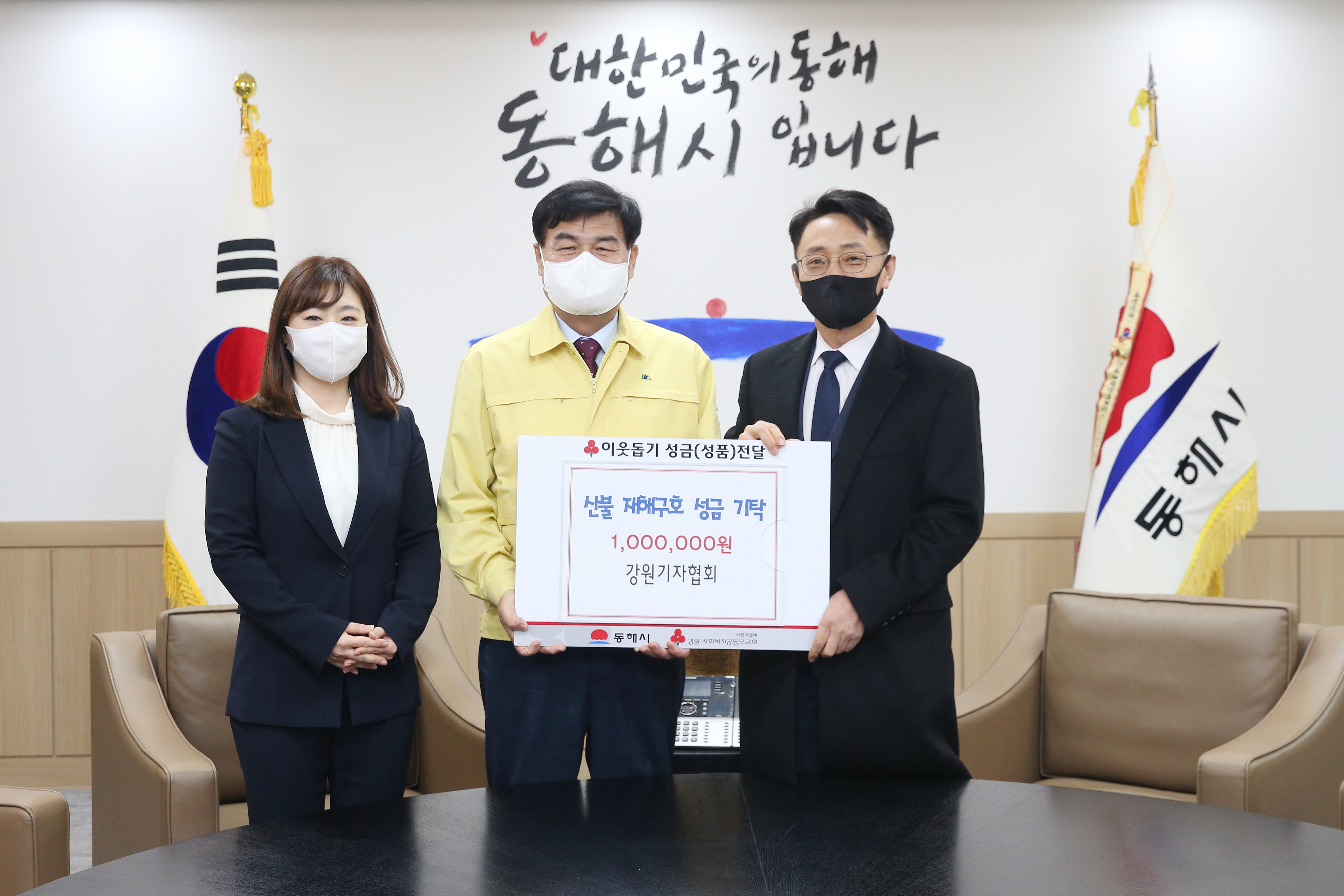 [강원사회복지신문 김종한 기자]=강원기자협회(회장 송승용)는 지난 3월 18일 동해시청을 방문해 산불피해주민을 위해 사용해 달라며 100만원의 성금을 기탁했다