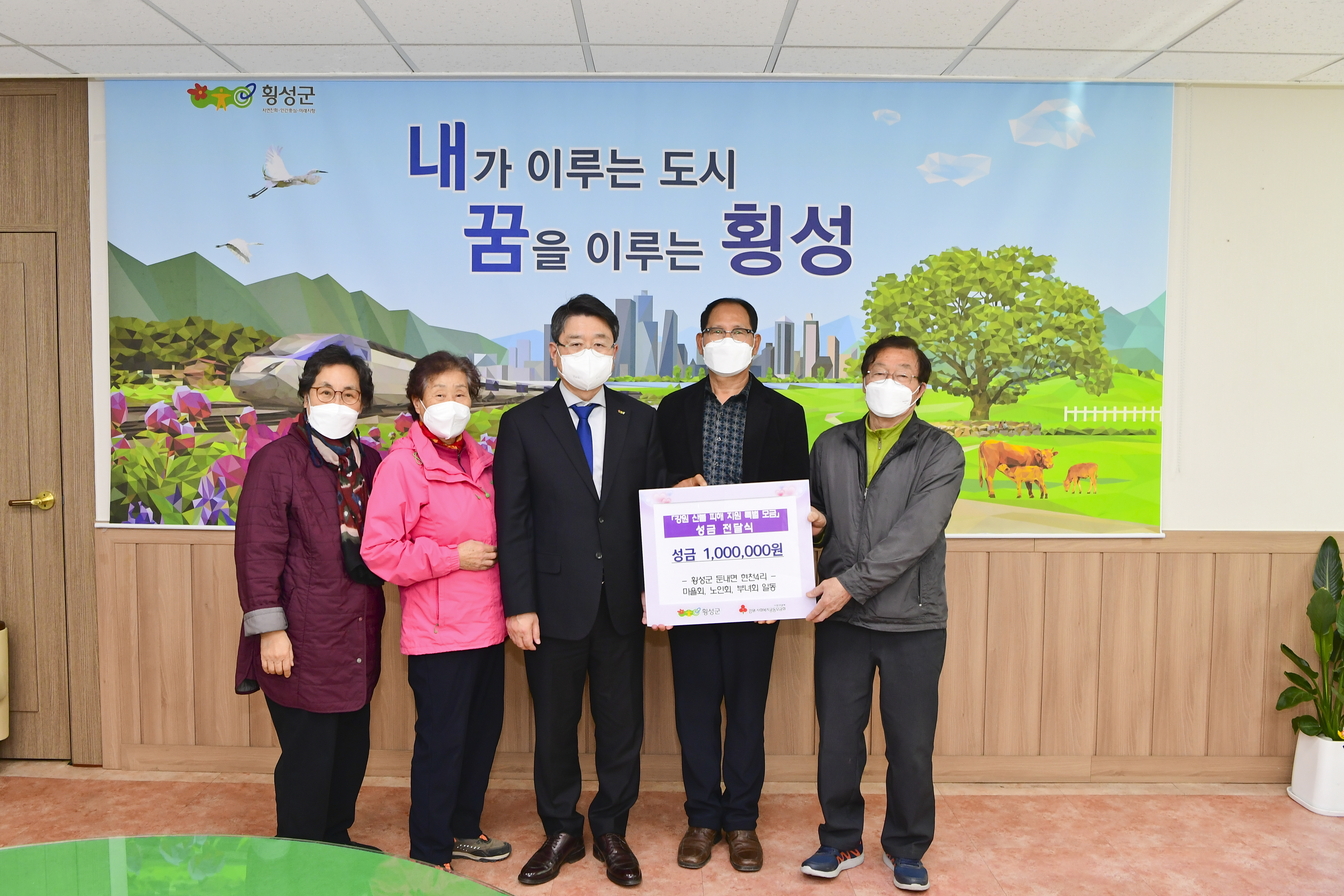 [강원사회복지신문 홍기한 기자]=횡성군 둔내면 현천4리 마을회(이장 한경재), 노인회(노인회장 이춘하), 부녀회(부녀회장 서영이) 일동은 지난 3월 15일 오후 4시, 군수 집무실을 방문하여 '강원 산불 피해 지원 특별 모금'에 1백만원을 기탁하였다. 이날 전달식에는 둔내면 현천4리 이장 한경재, 노인회장 이춘하 등이 참석...