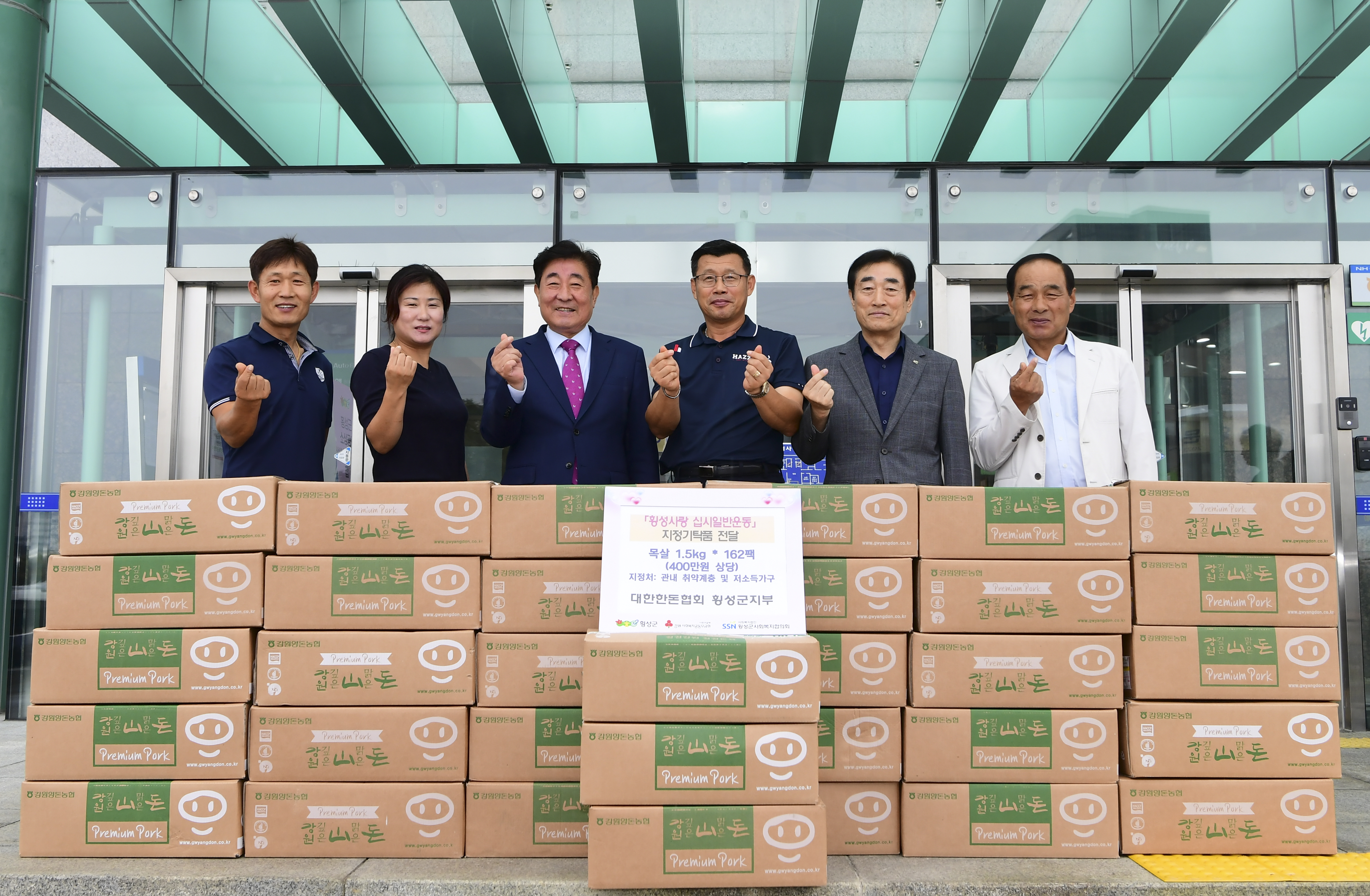 [강원사회복지신문 홍기한 기자]=대한한돈협회 횡성군지부(지부장 전길석)은 지난 9월 20일 10시 10분 군수 집무실에서 '횡성사랑 십시일반운동'에 동참하는 의미에서 목살 1.5kg 162팩(400만원 상당)을 기탁하였다.