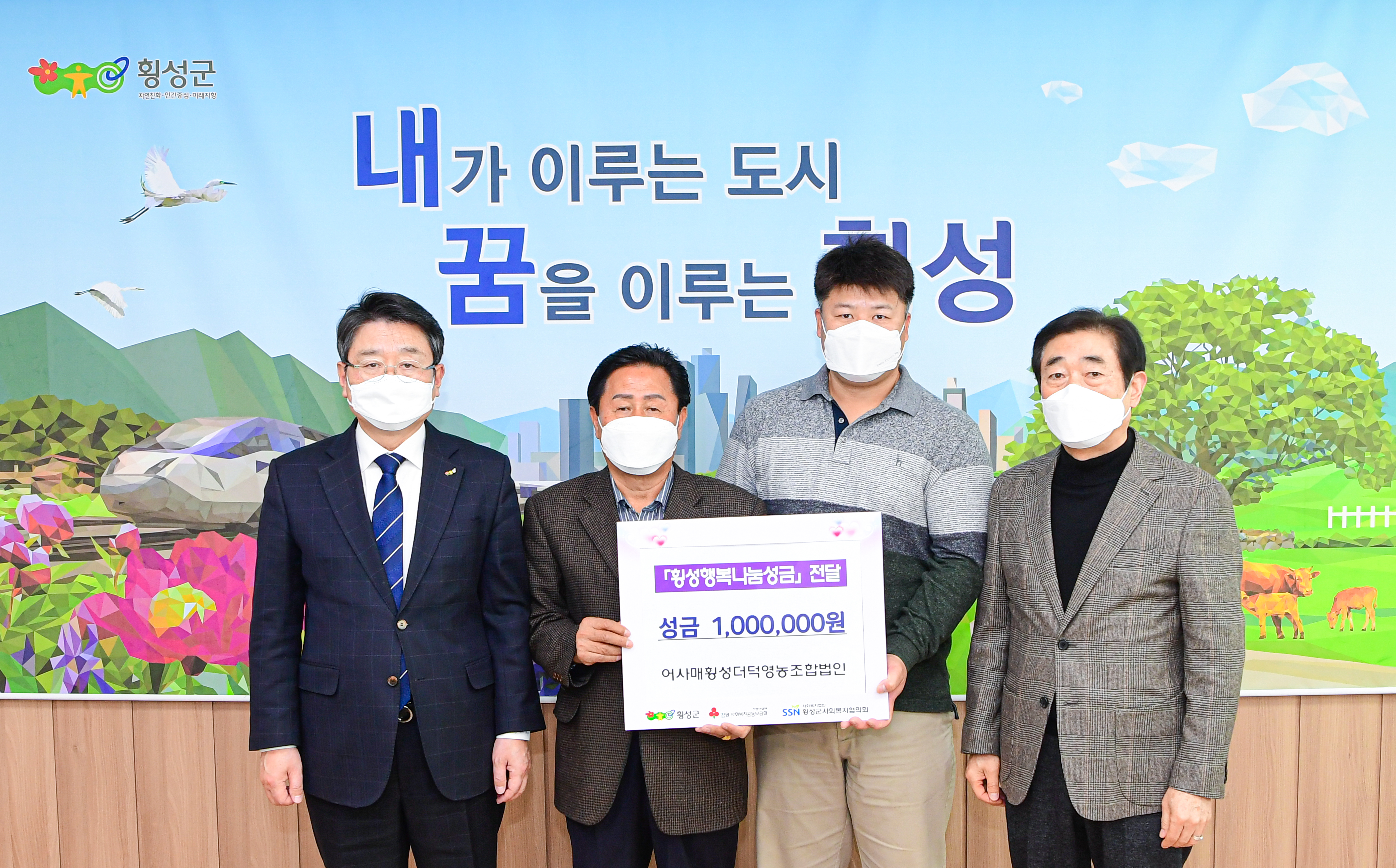 [강원사회복지신문 서은진 기자]=어사매횡성더덕영농조합법인(대표 백민수)은 지난 3월 2일 오전 10시 30분, 군수 집무실을 방문하여 성금 1백만원을 '횡성행복나눔성금'에 기탁했다. 이날 전달식에는 백민수 어사매횡성더덕영농조합법인 대표와 이철수 전 횡성군더덕연합회장이 참석하였다. 기탁된 성금은 횡성군 관내 저소...