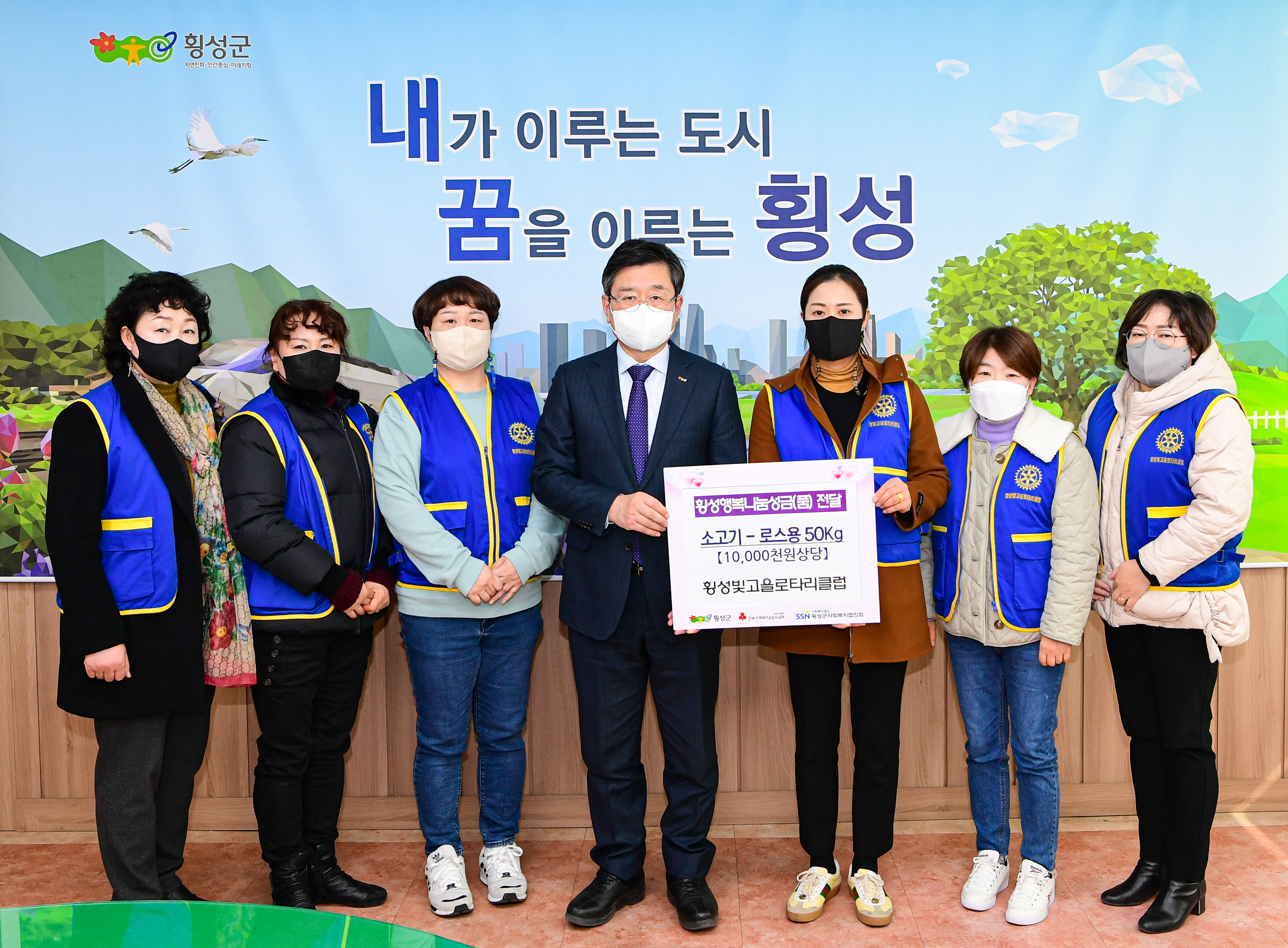 [강원사회복지신문 홍기한 기자]=횡성빛고을로타리클럽(회장 이선영, 총무 김연화(차기회장)에서는 지난 2월 25일 오후 2시, 군수 집무실을 찾아 소고기 구이용 50Kg(10,000천원 상당)를 기탁했다. 횡성 빛고을로타리클럽에서는 지난해에도 저소득가구를 위한 초복 키트 등 성품을 전달한 바 있다. 전달된 성품은 횡성군 관내...