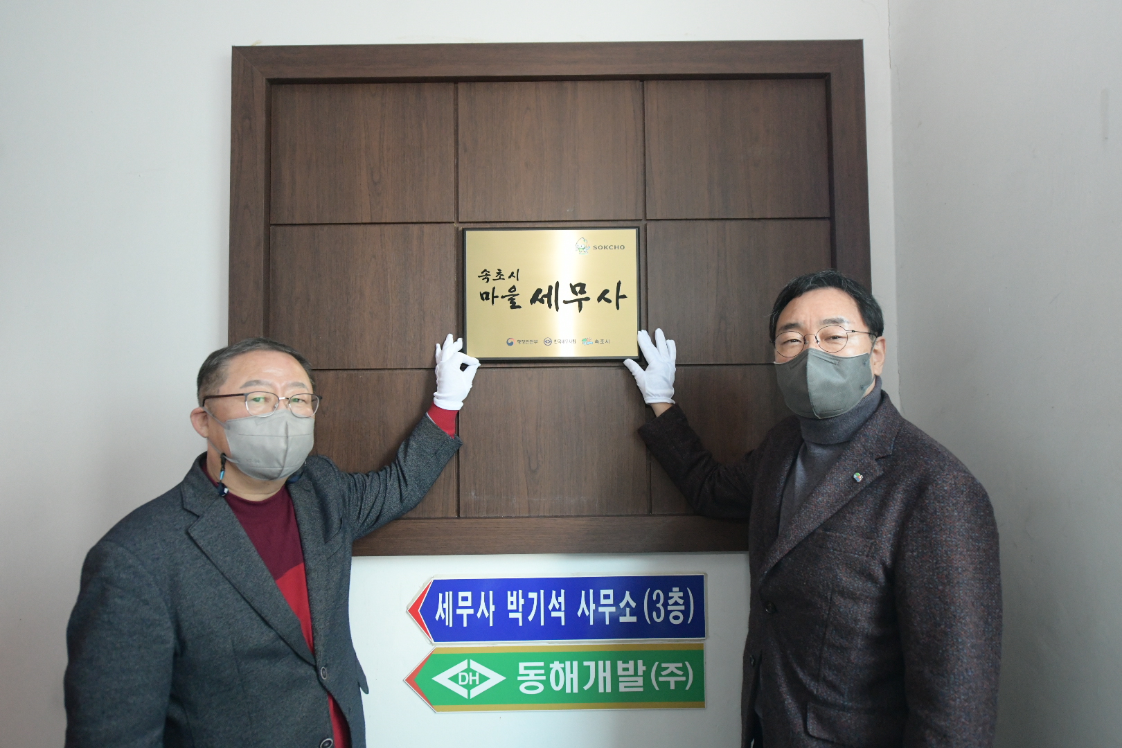 [강원사회복지신문 홍기한 기자]=속초시는 지난 2월 18일(금) 국세와 지방세 분야에 재능기부를 하고 있는 속초시 마을세무사 박기석 세무사 사무실에서 '속초시 마을세무사' 현판 수여식을 진행했다. 속초시는 2021년 마을세무사 운영 및 제도 활성화를 위하여 '속초시 마을세무사 운영조례'를 제정하였으며 이를 바탕으로 ...