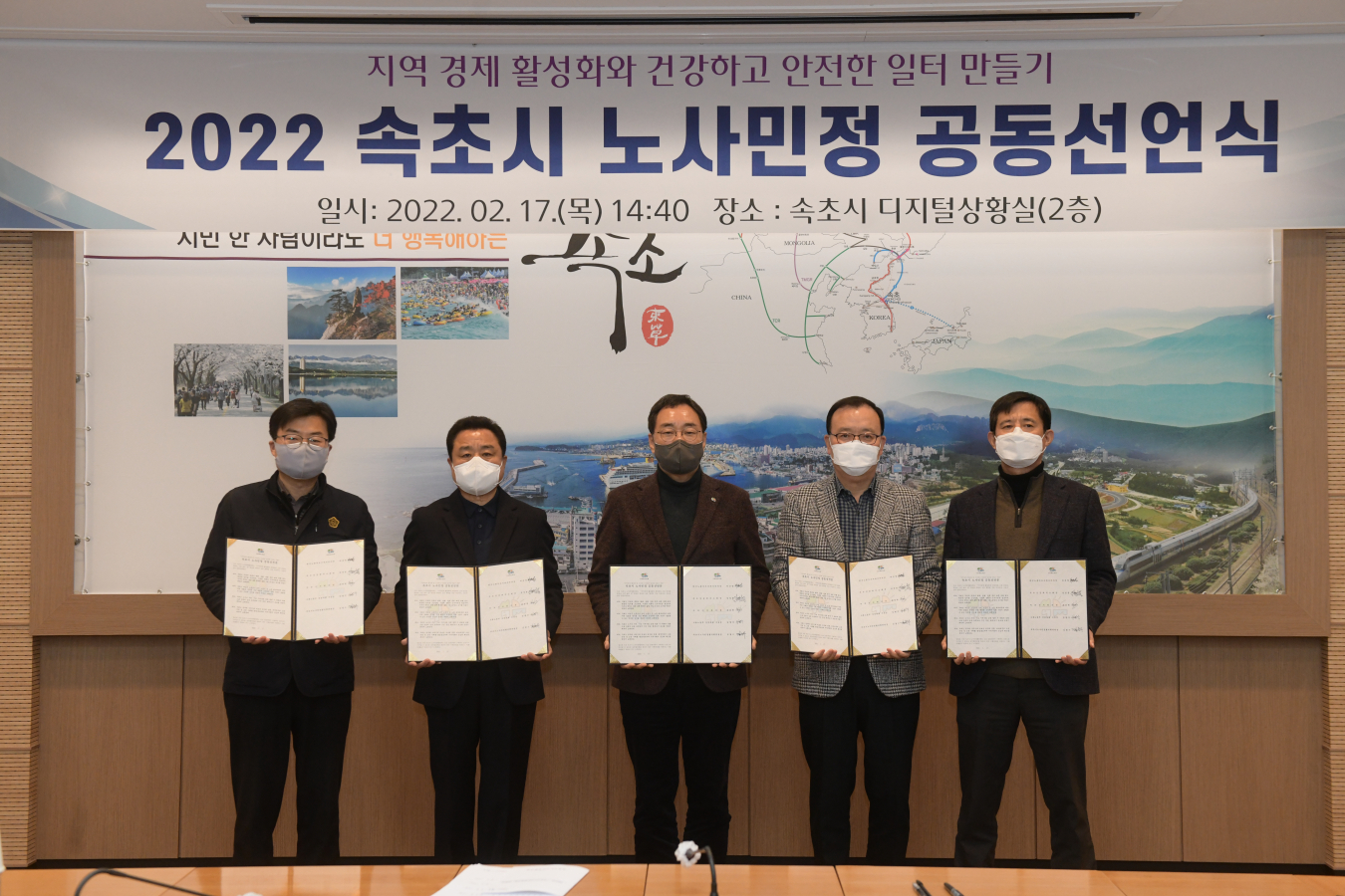 [강원사회복지신문 서은진 기자]=속초시노사민정협의회(위원장: 김철수 속초시장)는 지난 2월 17일 속초시청 디지털상황실에서 2022년도 제1차 본회의를 열고 지역 경제 활성화와 건강하고 안전한 일터 만들기 등 올해 사업계획을 심의하고 노사민정 공동선언문 채택 등 본격 활동에 들어간다. 올해 중점과제로 노사민정 사회...
