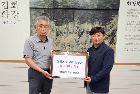 [강원사회복지신문 김도연 기자]=철원군 김화읍 청양6리 김현태이장은 지난 9월 19일 지역내 어려움을 겪고있는 이웃을 위해 사용해 달라며 오대미 햅쌀(10kg) 32포(1,100천원 상당)를 김화읍사무소를 통해 기탁했다.