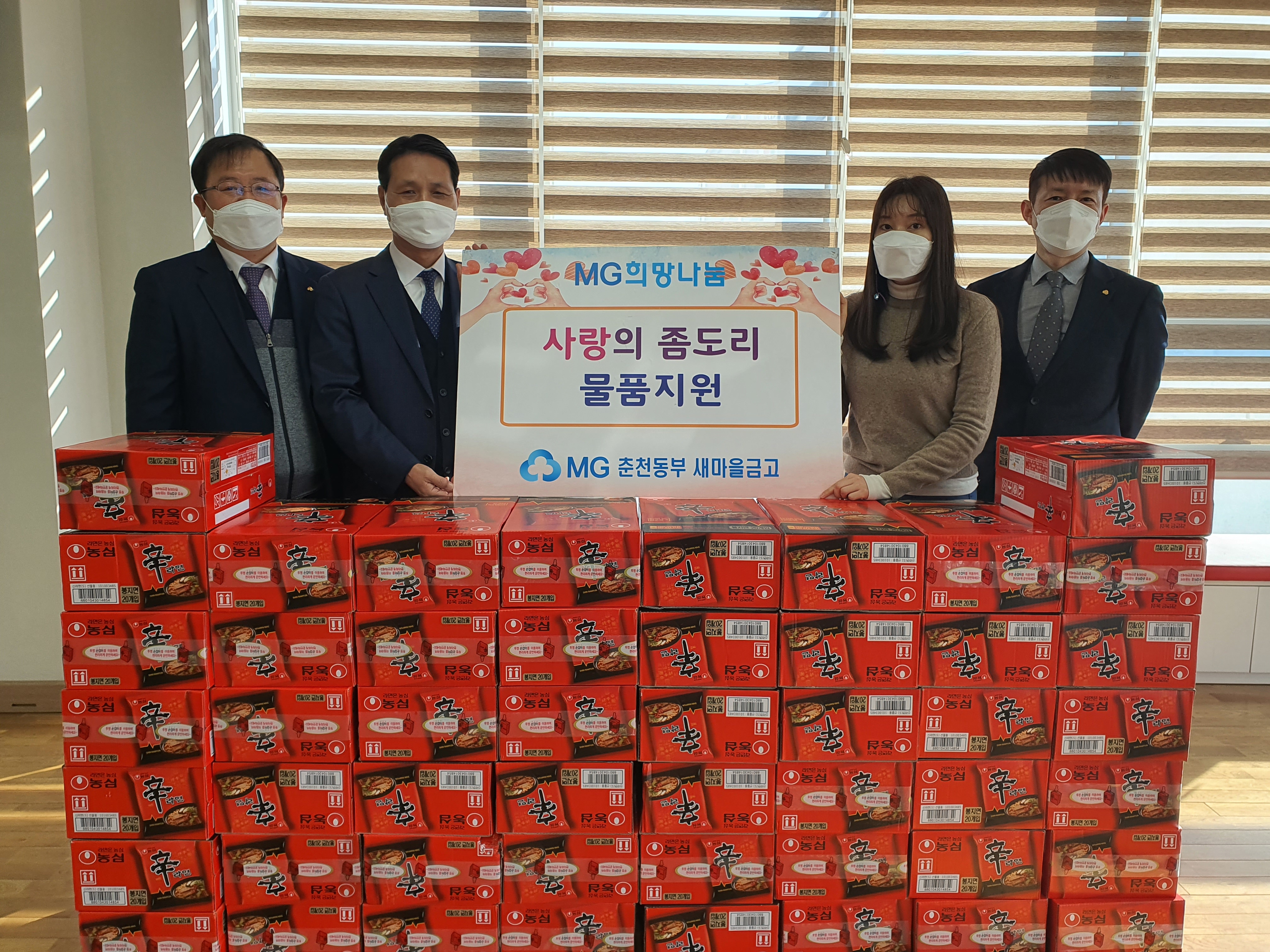 [강원사회복지신문 서은진 기자]=춘천동부새마을금고(이사장:박광선)는 지난 2월 15일 직원들이 모은 사랑의 좀도리 운동 모금액으로 라면 50상자를 구입해 춘천시 교동행정복지센터(동장:김춘옥)에 전달했다.