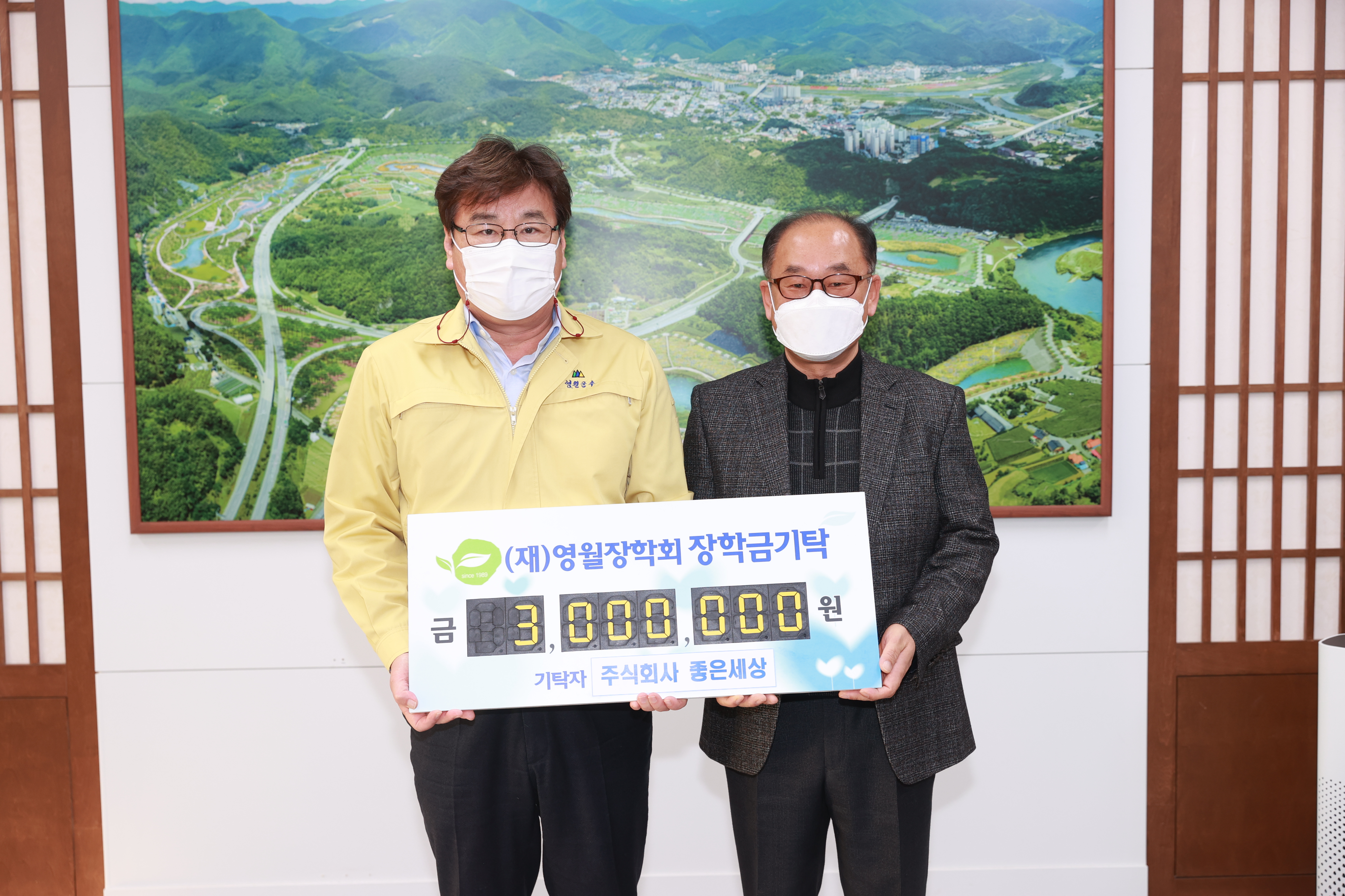 [강원사회복지신문 이정환 기자]=(주)좋은세상은 지난 2월 9일 영월지역 인재육성을 위해 장학금으로 쓰이길 바란다며 3백만원을 재단법인 영월장학회(이사장 최명서)에 기탁하였다.