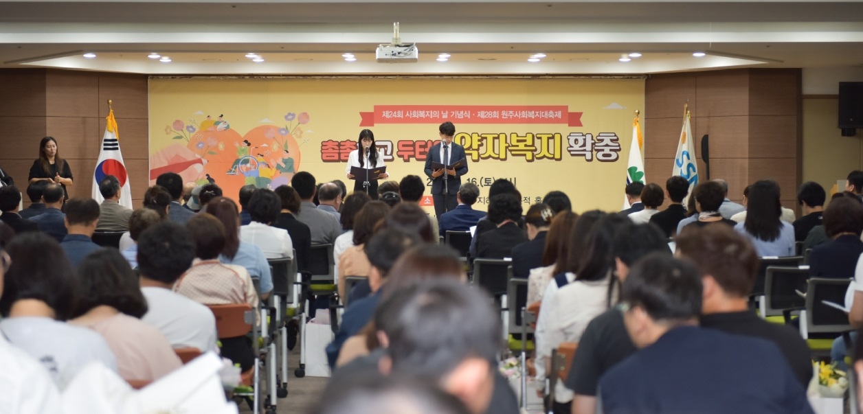 [강원사회복지신문 최재석 기자]=지난 9월 16일(토) 원주시청 다목적홀에서 화합과 소통의 시간 가져 원주시가 주최하고 원주시사회복지협의회가 주관하는 '제28회 원주사회복지대축제'기념식이 원주시청 지하1층 다목적홀에서 열렸다. 이날 기념식에서는 우리 지역 곳곳에서 지역복지 발전을 위해 헌신해 온 사회복지 유공자...