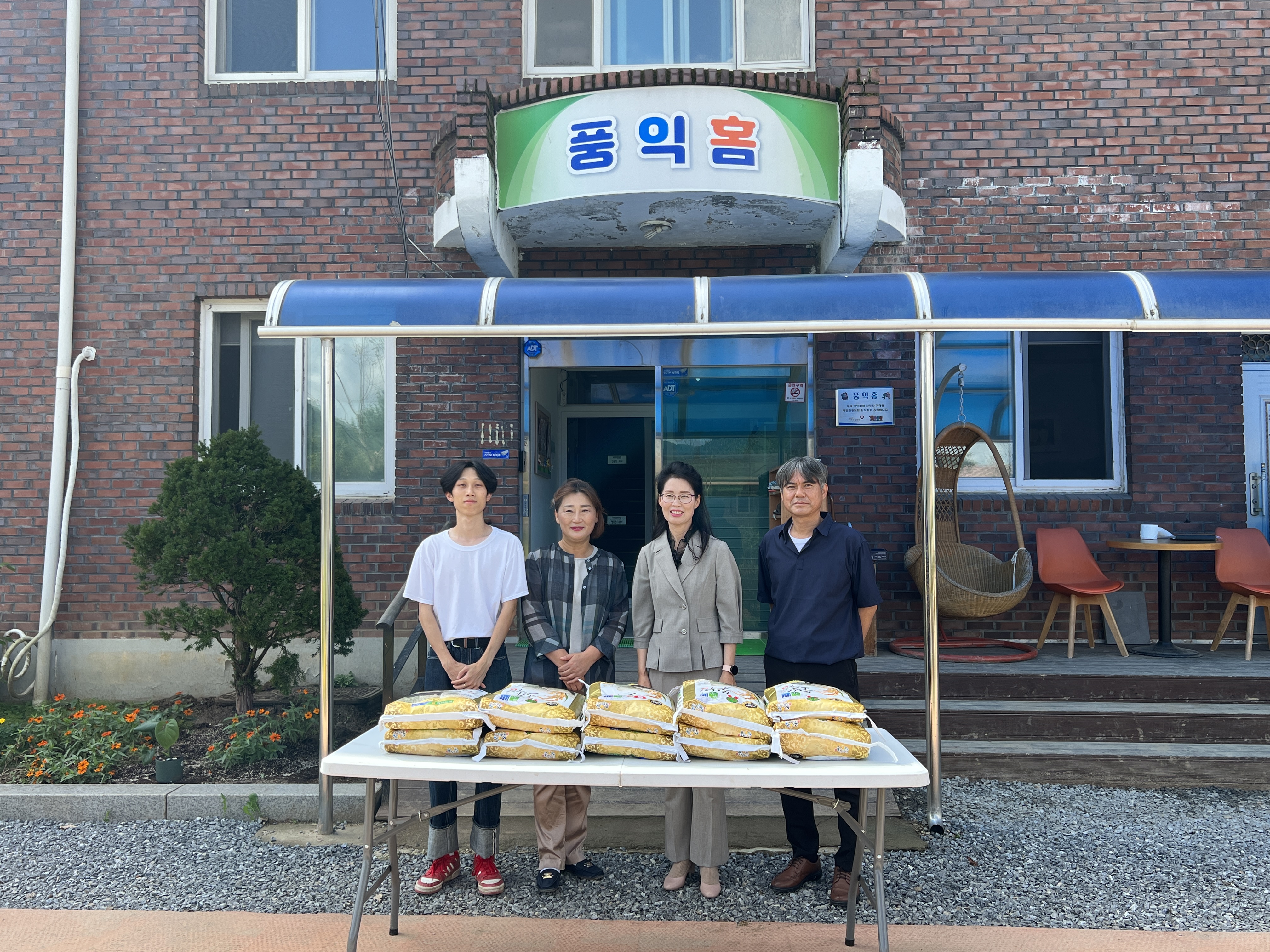 [강원사회복지신문 홍기한 기자]="추석을 맞아 이웃과 온정을 나눠요" 강원특별자치도화천교육지원청(교육장 김종녀)은 9월 18일(월) 추석 명절을 앞두고 화천군 하남면에 위치한 사회복지시설(풍익홈)을 방문하여 위문품을 전달하였다.