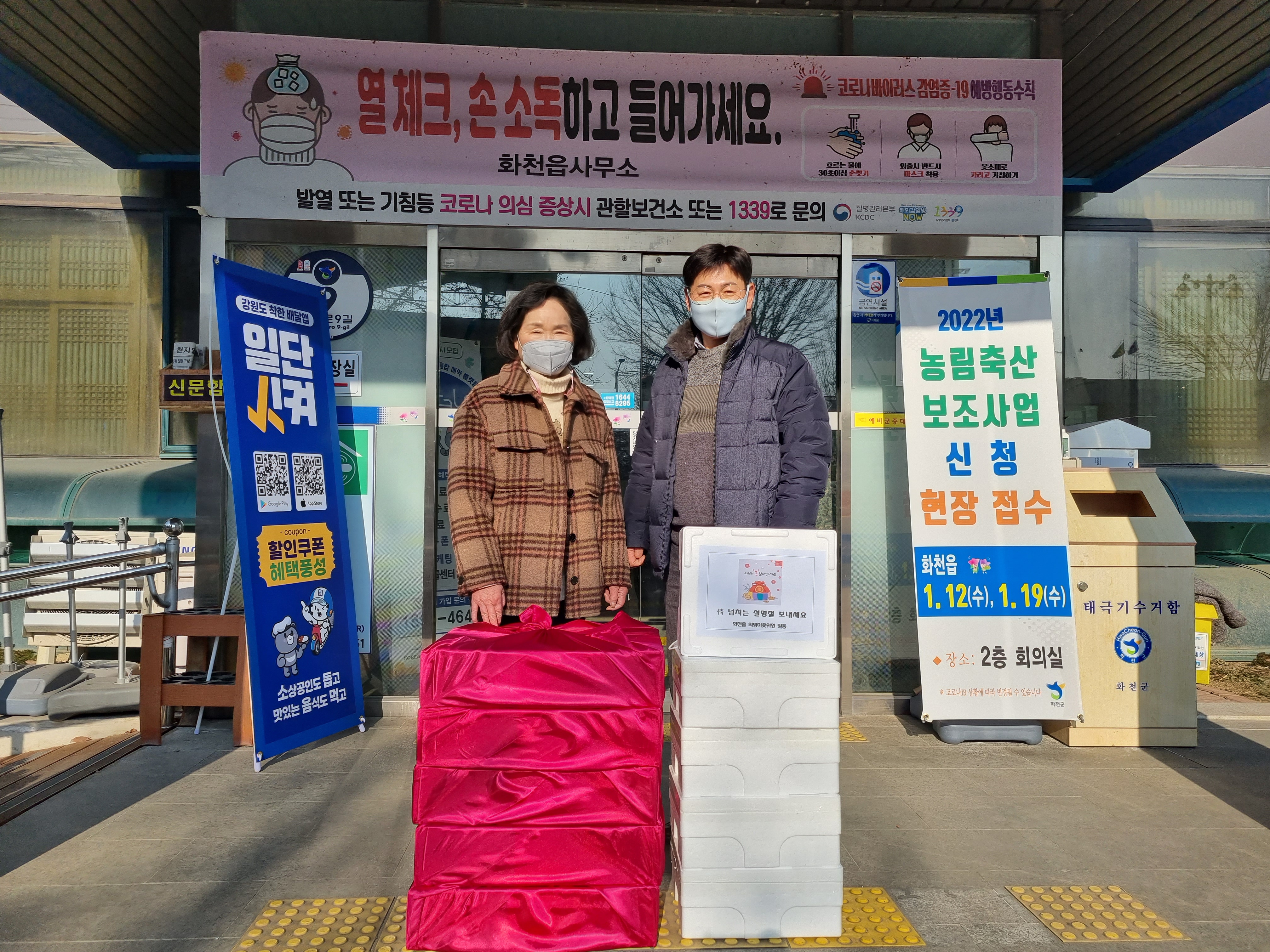 [강원사회복지신문 이정환 기자]=화천읍 지역사회보장협의체(희망이웃 위원장:신현자)는 지난 1월 27일 설 명절을 맞아 지역 저소득 독거노인 가구를 방문해 사과박스와 어묵세트를 비대면으로 전달하고, 위문했다.