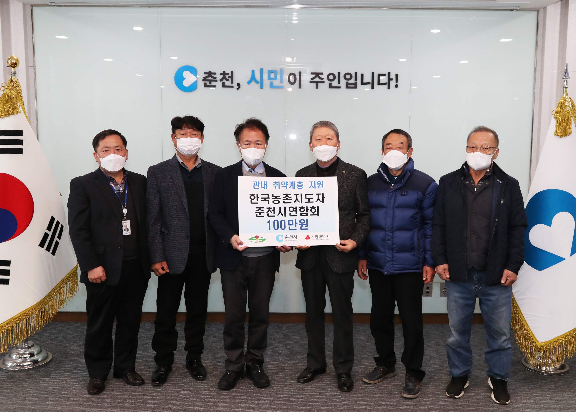 [강원사회복지신문 홍기한 기자]=한국농촌지도자 춘천시연합회(회장:최병오)는 지난 1월 19일 지역 내 저소득층을 위한 성금 100만원을 춘천시정부에 기탁했다.