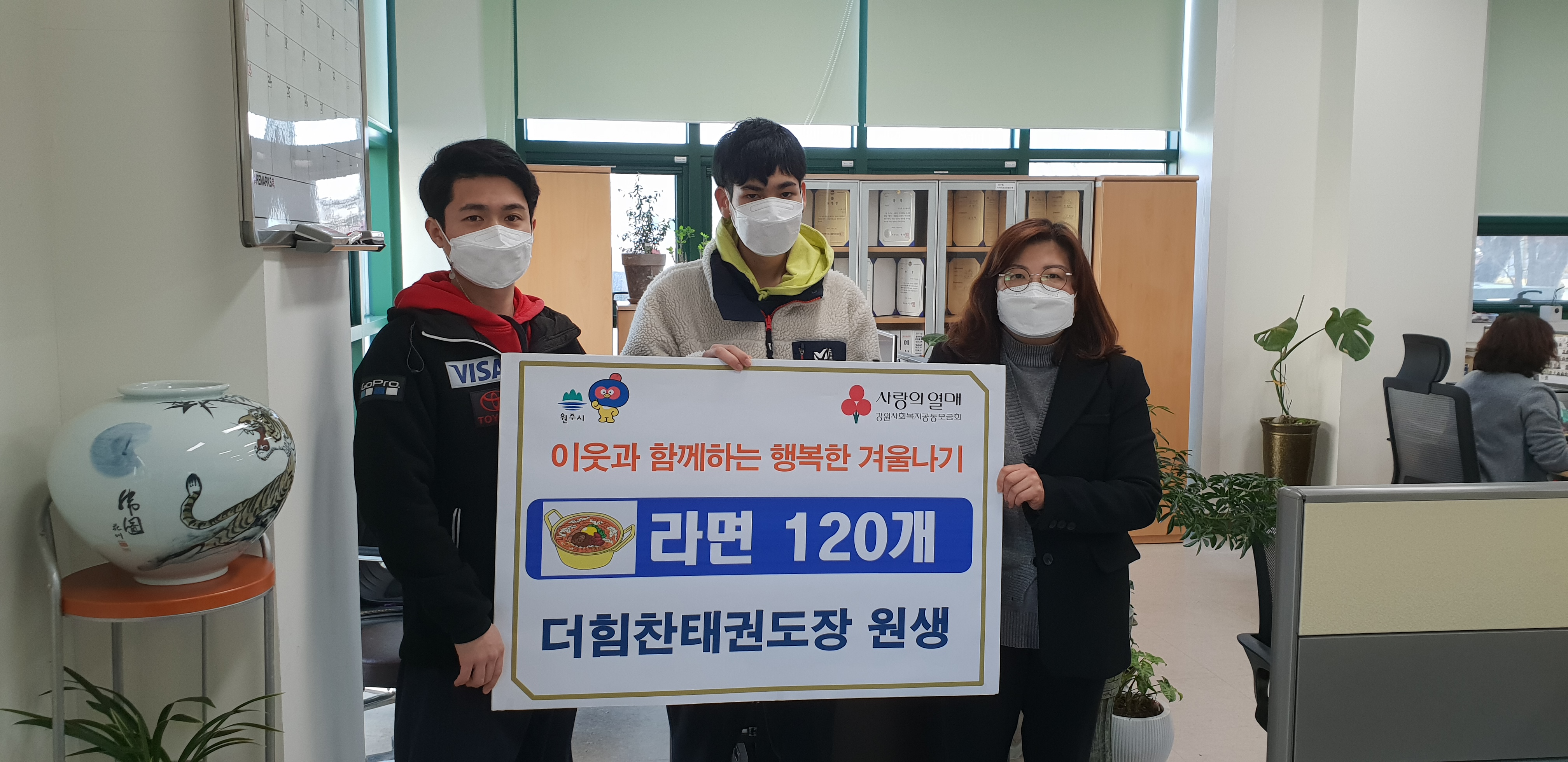 [강원사회복지신문 서은진 기자]=원주시 단구동 더힘찬태권도장(관장 고동준)은 지난 1월 18일 단구동 행정복지센터를 방문해 원생들이 정성껏 모은 라면 120개를 전달했다. 고동준 관장은 "연말연시를 맞아 태권도장 원생들과 함께 주변의 어려운 이웃에게 작은 정성을 전할 수 있어 기쁘다."라고 말했다.