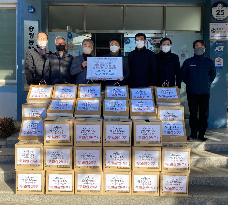 [강원사회복지신문 이정환 기자]=두원상선(주)(대표이사 이석기)에서 지난 1월 17일 동해시 송정동행정복지센터를 방문해 500만원 상당의 이웃돕기성금과 설 위문품을 전달했다. 이날 전달식에는 두원상선(주) 이석기 대표와 송정동장 등이 참석했으며, 기탁한 성금은 강원도 사회복지공동모금회를 통해 동해시의 어려운 이웃...