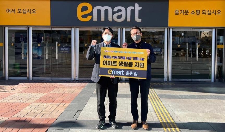 [강원사회복지신문 유경수 기자]=이마트 춘천점(점장 박종욱)은 지난 1월 13일 코로나19로 인해 어려움을 겪고 있는 위탁가정을 위해 작년에 이어 올해도 1,000만원 상당의 생필품을 강원도가정위탁지원센터(관장 남궁제정)에 전달하였다. 박종욱 점장은 "코로나19로 인해 어려움을 겪고 있는 위탁가정에 생필품 전달로 도움...