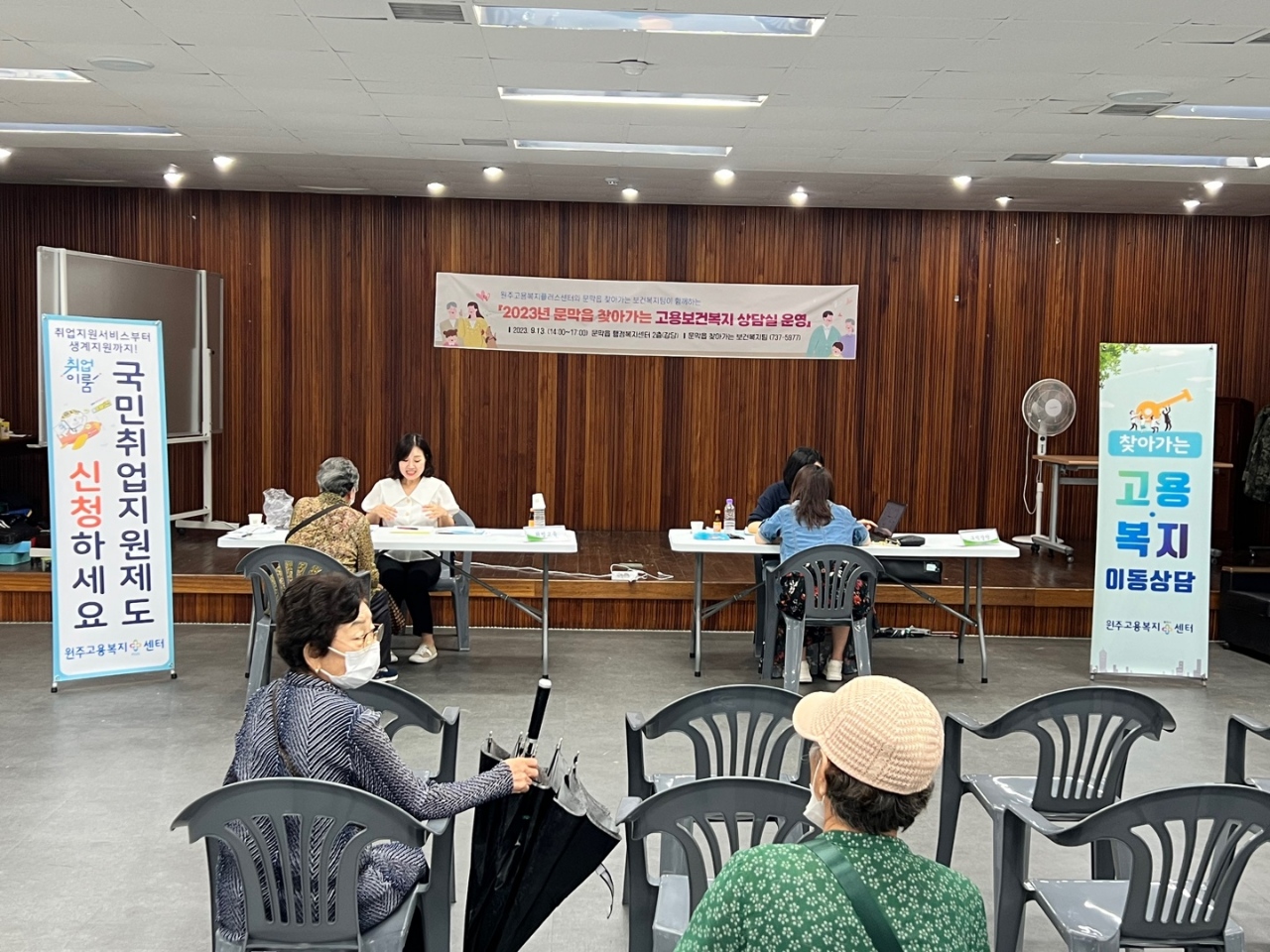 [강원사회복지신문 최재석 기자]=원주시 문막읍 찾아가는 보건복지팀은 지난 9월 13일 문막읍행정복지센터 2층에서 '2023년 하반기 찾아가는 고용보건복지 상담실'을 운영하였다. 지난 4월에 진행했던 상반기 찾아가는 고용보건복지 상담실 운영에 대한 지역주민의 호평에 힘입어, 하반기에도 원주시고용복지플러스센터와의 ...