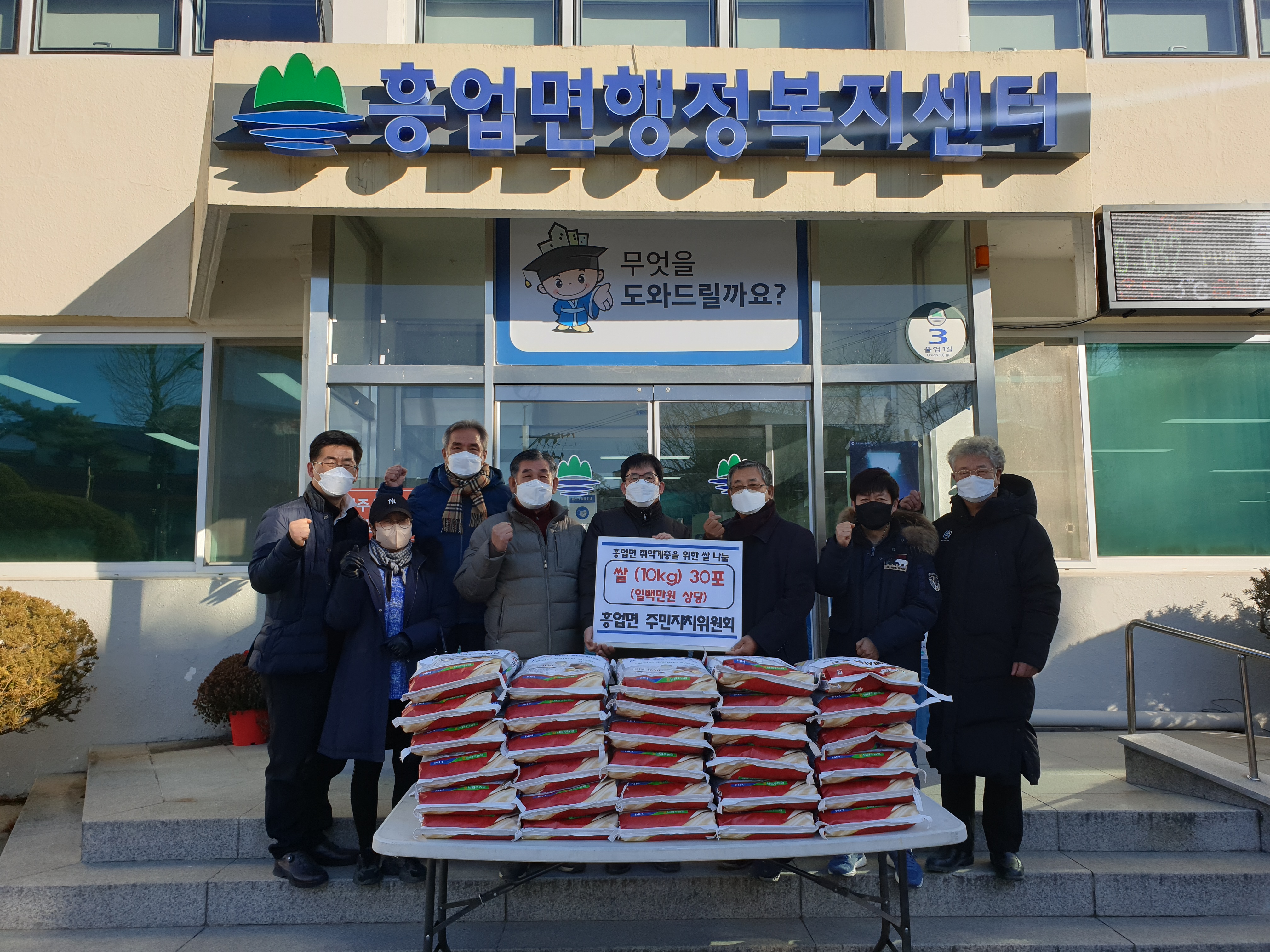 [강원사회복지신문 유경수 기자]=원주시 흥업면 주민자치위원회(위원장 강필수)는 지난 12월 31일 흥업면 행정복지센터를 찾아 지역 취약계층을 위해 100만 원 상당의 쌀(10㎏) 30포를 전달했다.