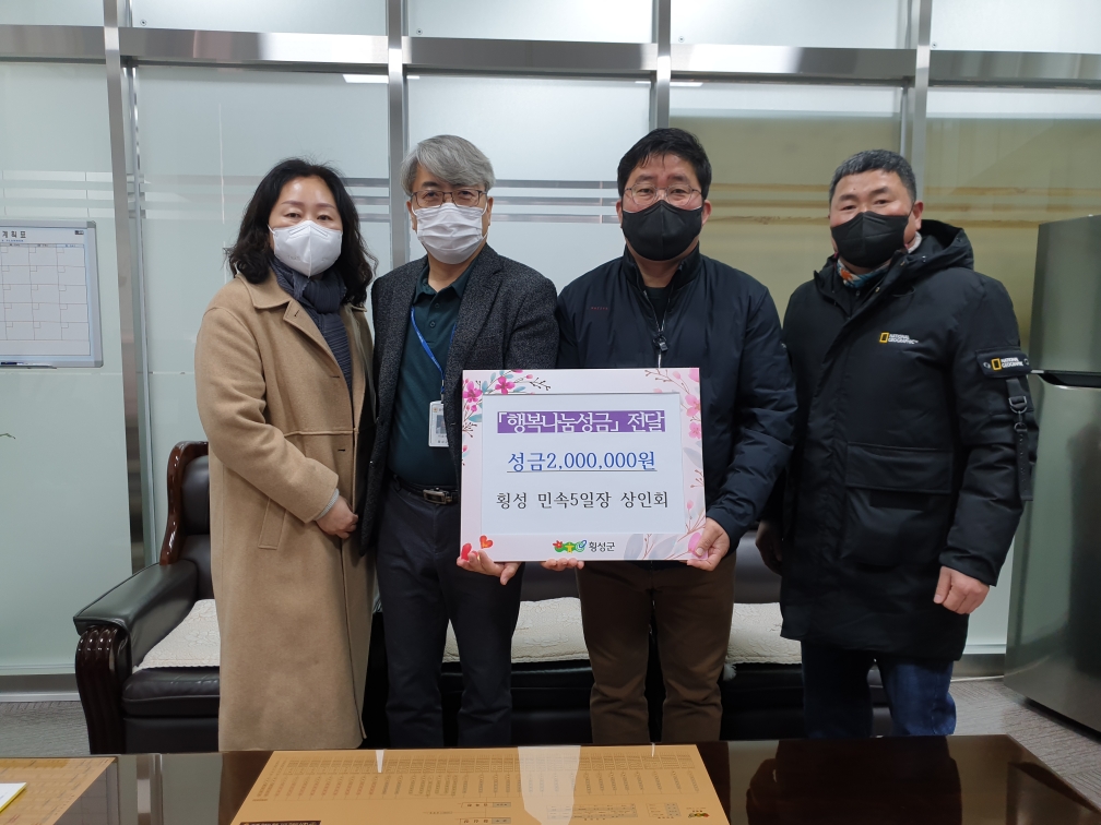 [강원사회복지신문 홍기한 기자]=지난 12월 31일 횡성 민속5일장 상인회(회장 공영화)에서는 관내 취약계층가구를 위해 사용해 달라며 성금 200만원을 횡성읍행정복지센터에 기탁했다. 공영화 회장은 "큰 금액은 아니지만 상인회에서 십시일반으로 모은 성금이 어려운 가정에 조금이라도 도움이 되었으면 좋겠다"고 했다.