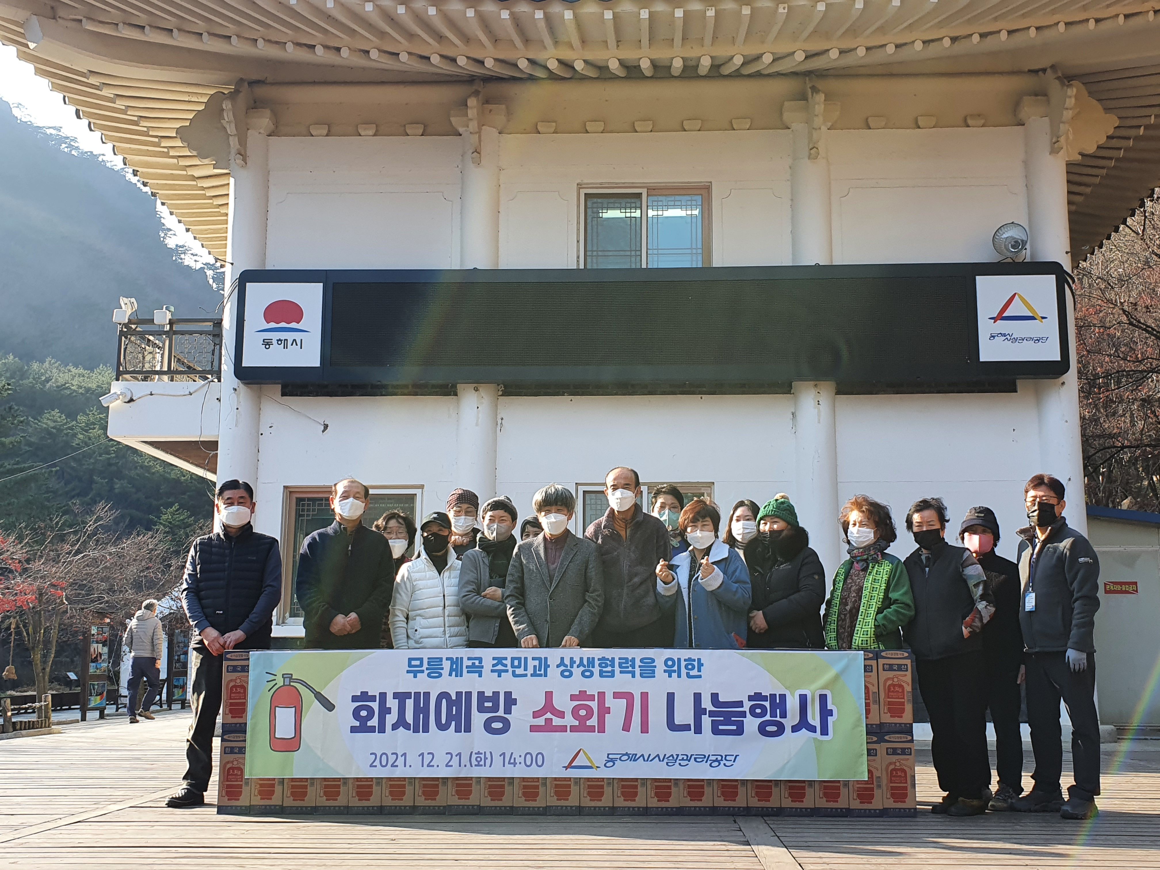 [강원사회복지신문 김종한 기자]=무릉계곡 상가에 소화기 나눔 이벤트 실시 화재 및 산불 취약 시기에 대비해 동해시시설관리공단(이사장 장덕일)은 지역민과 함께 상생하는 공단운영을 위해 지난 12월 21일 무릉계곡 상가를 대상으로 화재재난예방을 위한 '안전우선 소화기 나눔 행사'를 실시했다. 이번 행사는 최근, 무릉계...