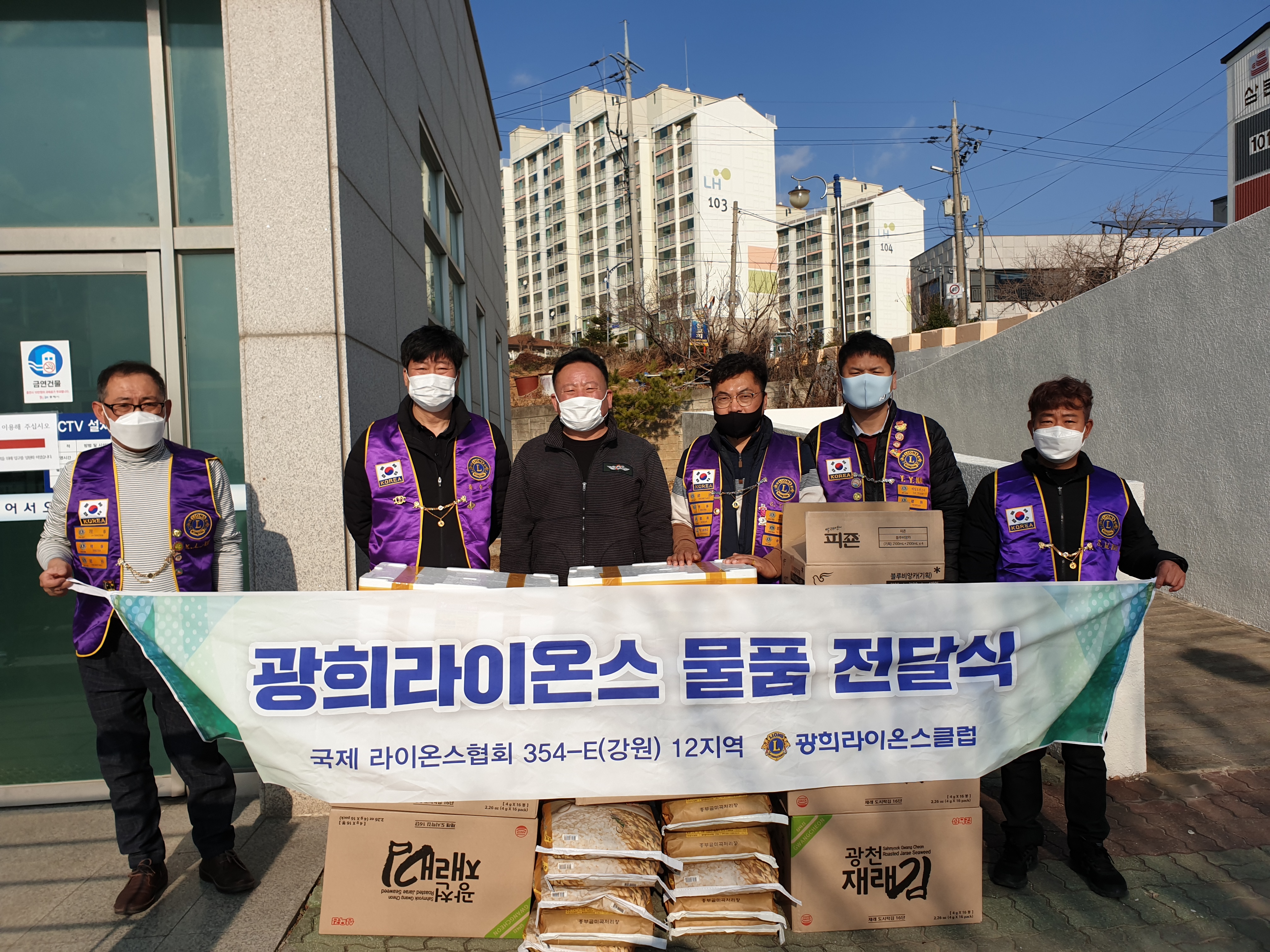 [강원사회복지신문 서은진 기자]=동해시 광희라이온스클럽(회장 김승윤)에서는 지난 12월 20일 동해시 묵호동 행정복지센터를 방문해 치킨, 김 등 100만원 상당의 후원물품을 기탁했다. 김승윤 회장과 회원들은 "경제적 어려움으로 결식우려에 놓여 있는 저소득가구에 식료품을 지원함으로써 조금이나마 부담을 덜어주고 싶다...