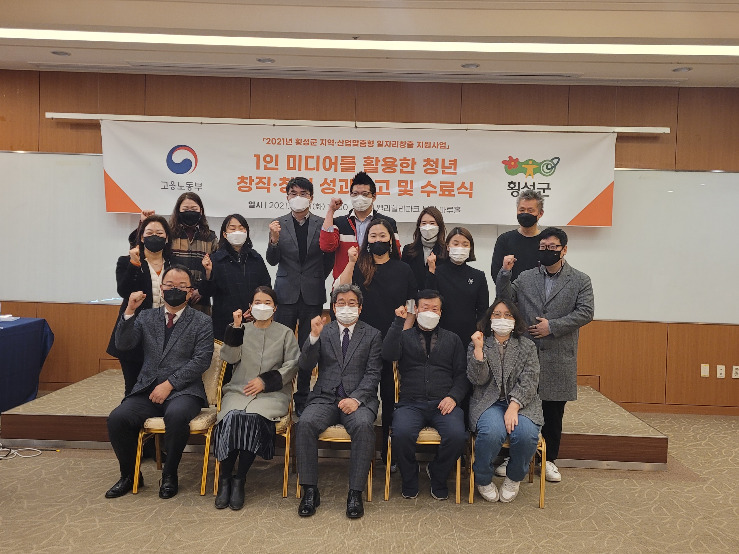 [강원사회복지신문 홍기한 기자]=횡성군은 2021년 지역산업맞춤형 일자리 창출 지원사업 '언텍트 시대의 1인 미디어를 활용한 횡성지역 문화·행사 기획 운영 전문가 및 미디어커머스 전문가 양성을 위한 청년 창직·창업 프로젝트' 수료식이 지난 12월 21일, 둔내면에 위치한 웰리힐리 파크 마루홀에서 열렸다. 1인 미디어를...