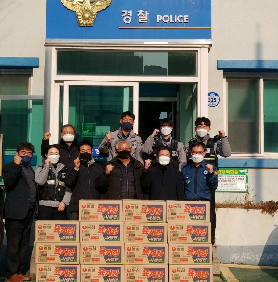 [강원사회복지신문 유경수 기자]=춘천시 후평1동 주민자치회(회장:김종학)는 지난 12월 21일 지역 주민의 안전과 보호를 위하여 노고가 많은 춘천소방서, 후평지구대, 후평1동 자율방범대를 방문하여 라면 50박스(90만원 상당)를 전달하며 감사의 마음을 전했다. 유경수 기자